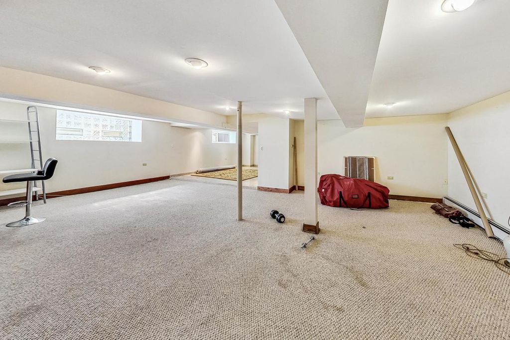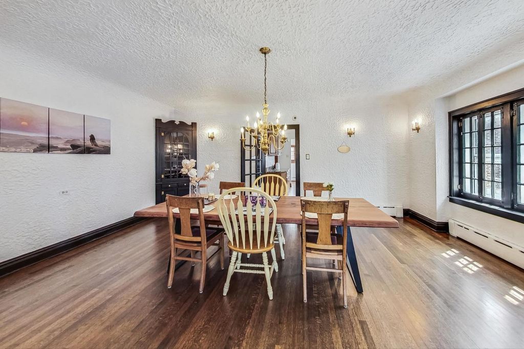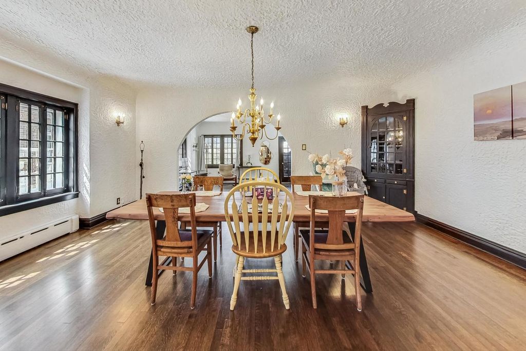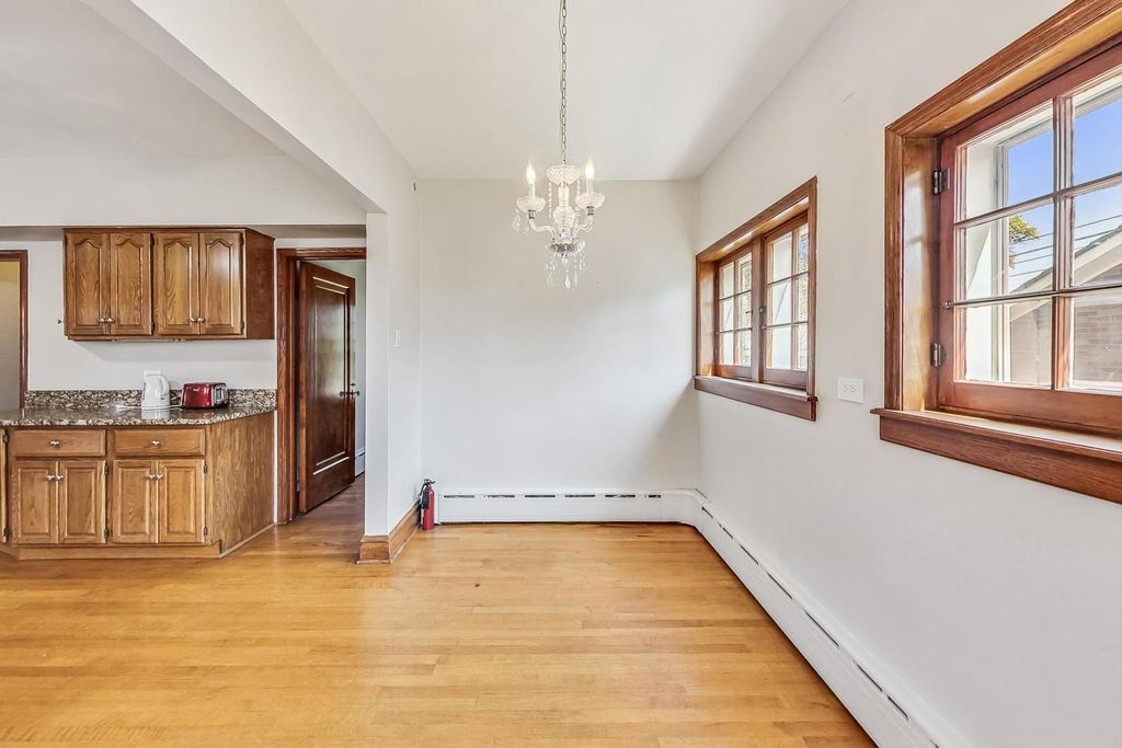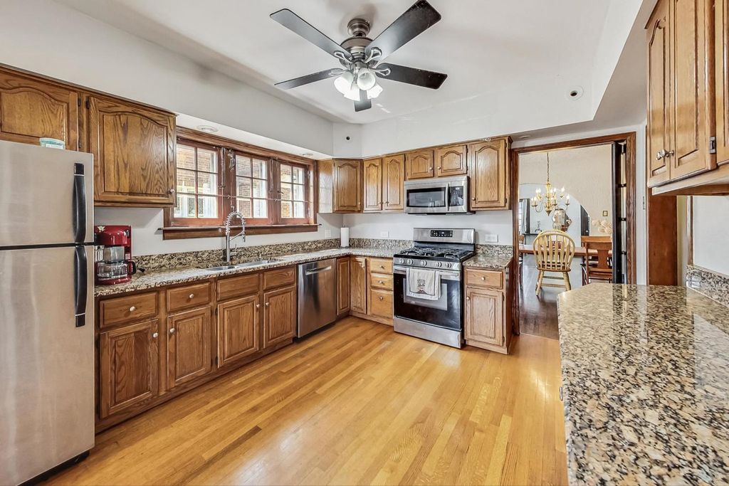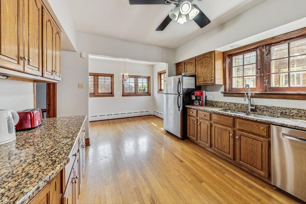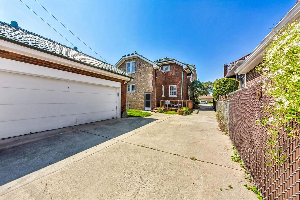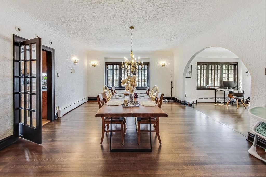Stunning European Custom-Built Home in Historic Depot District. Step into a world of vintage charm and European elegance with this custom-built home, beautifully situated in the heart of Berwyn's Historic Depot District. This residence, reminiscent of a grand European mansion, showcases a brick and stone exterior with a symmetrical design, green clay Spanish tile roofs, and all-copper gutters, flashing, and trim. Inside, discover coved ceilings, large casement windows, and impeccably maintained textured plaster walls. The spacious living room features a stone fireplace, while the formal dining room boasts vintage corner cabinets. The kitchen, flooded with natural light, is equipped with granite countertops, stainless steel appliances, and a separate pantry. Upstairs, find three bedrooms, a den, two balconies, and a full bathroom, all accented with ornate etched plaster wall trim. The finished basement offers a wet bar, custom wine cellar, full bathroom, and ample storage. Enjoy outdoor living with a deck, manicured backyard, oversized 2-car garage, and gated carport. Conveniently located near Metra, shopping, dining, and more. This home has been featured in Berwyn's Historic Bungalow Tour-an absolute must-see!