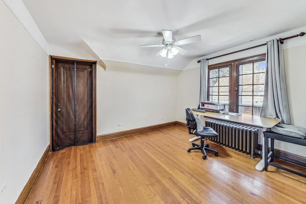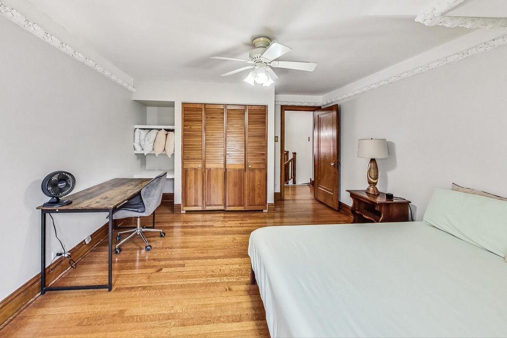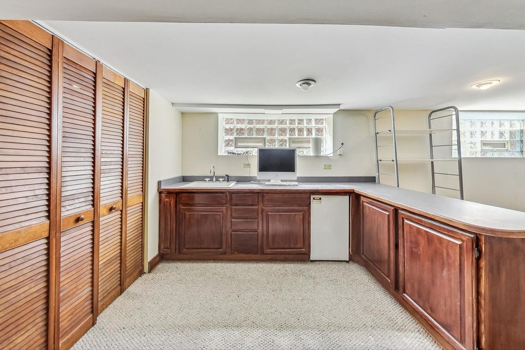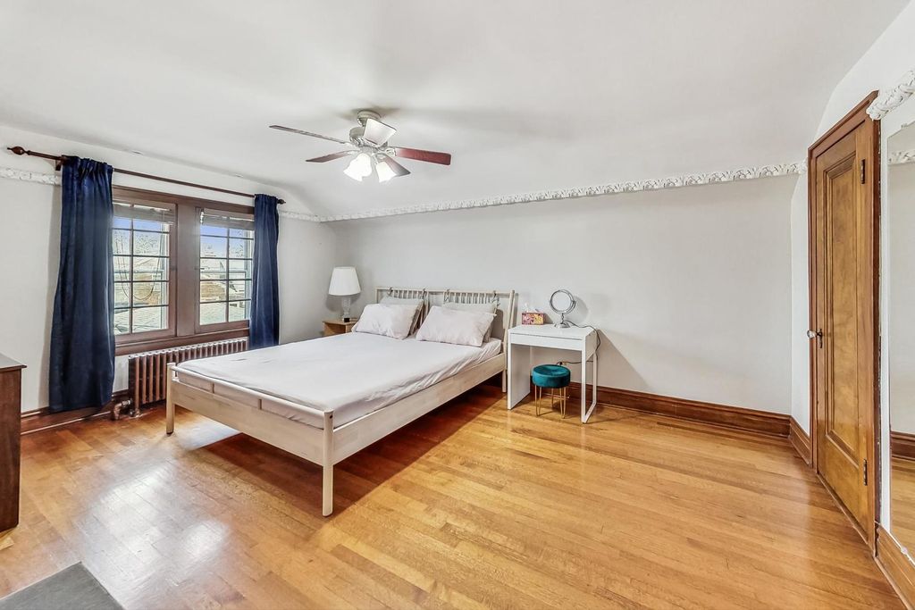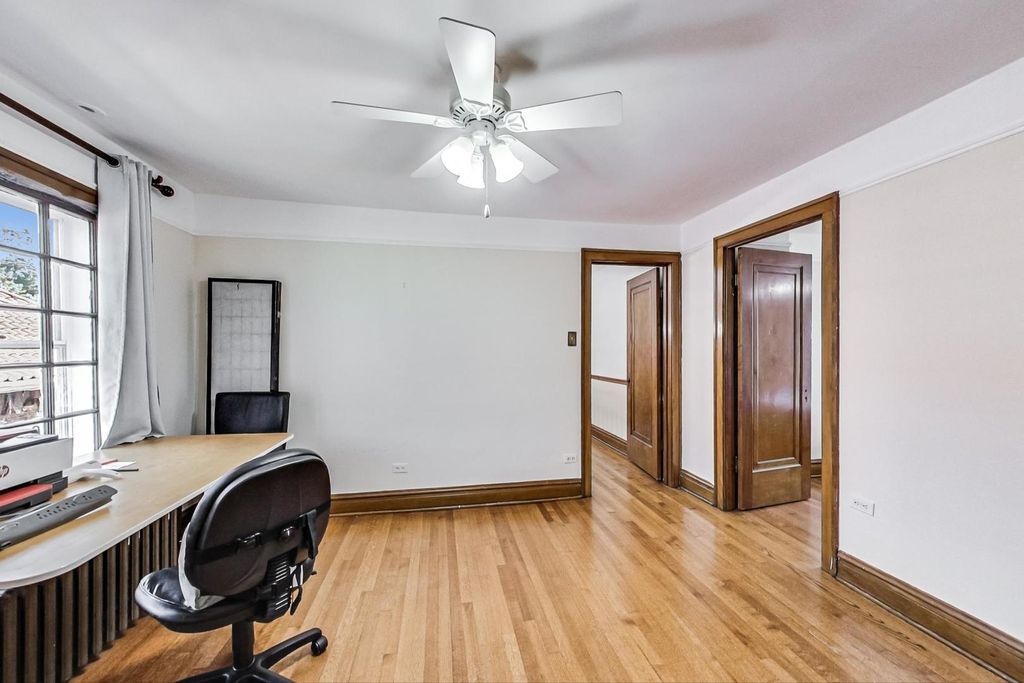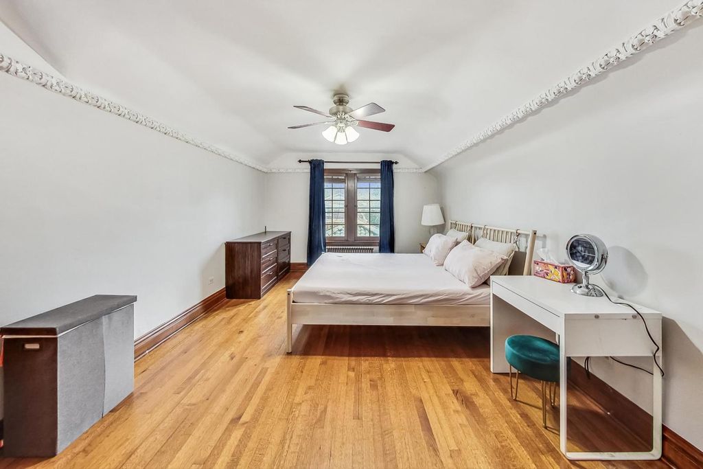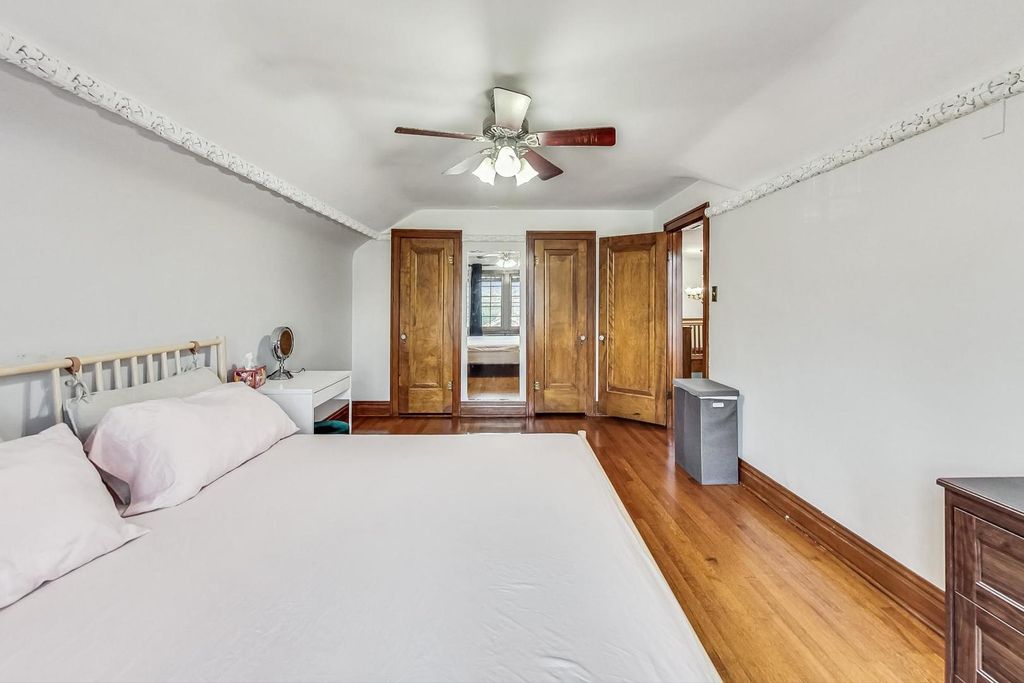Stunning European Custom-Built Home in Historic Depot District. Step into a world of vintage charm and European elegance with this custom-built home, beautifully situated in the heart of Berwyn's Historic Depot District. This residence, reminiscent of a grand European mansion, showcases a brick and stone exterior with a symmetrical design, green clay Spanish tile roofs, and all-copper gutters, flashing, and trim. Inside, discover coved ceilings, large casement windows, and impeccably maintained textured plaster walls. The spacious living room features a stone fireplace, while the formal dining room boasts vintage corner cabinets. The kitchen, flooded with natural light, is equipped with granite countertops, stainless steel appliances, and a separate pantry. Upstairs, find three bedrooms, a den, two balconies, and a full bathroom, all accented with ornate etched plaster wall trim. The finished basement offers a wet bar, custom wine cellar, full bathroom, and ample storage. Enjoy outdoor living with a deck, manicured backyard, oversized 2-car garage, and gated carport. Conveniently located near Metra, shopping, dining, and more. This home has been featured in Berwyn's Historic Bungalow Tour-an absolute must-see!
