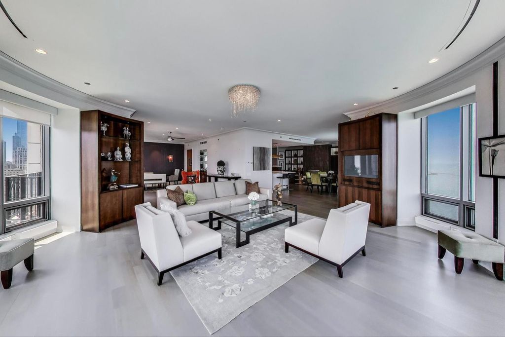 This building is all about PRIVACY.. almost to the point of being a co-op but condo ownership. Spectacular high floor 840 North Lake Shore Drive residence in the highly coveted 01 Tier, with large Rotunda windows showcasing jaw dropping views of Lake Michigan, Navy Pier, the play pen, Lake Shore Park and the cityscape.....absolutely breathtaking!!!! The 3BR, 3.5BA residence encompasses over 4,000 sq ft of professionally curated and reconfigured space finished to the highest decorating standards. It has wide plank white oak floors, custom lighting and motorized window treatments throughout and a chef's open kitchen with every lux touch including custom cabinetry and appliances from Sub Zero, Gagganau and Miele. Large welcoming foyer, beautifully appointed rotunda formal living room, open kitchen with counter seating, sumptuous primary suite, both informal and formal dining areas, separated guest quarters/office, a balcony overlooking the Lake and Park and a separate laundry room. 2 Parking space included. Building welcomes cats and dogs. Front seats to the Fireworks display on Wednesdays and Saturdays and Chicago's Air and Water Show!!! As seen on Best of HGTV, and The Travel Channel.. See below for episode.