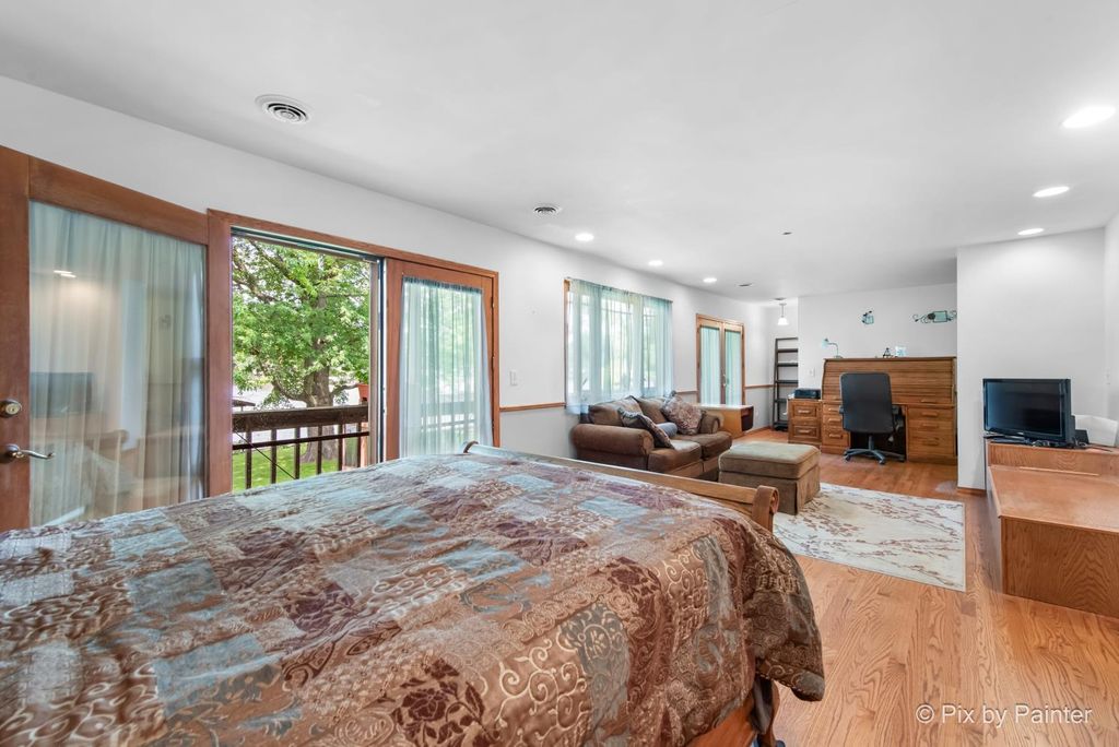 Outstanding Views of Fox River!!!! Feeds Into Chain of Lakes!!! This Extraordinary Floor Plan Will WOW Multi Generations!!! Remodeled From Top to Bottom!! Enter Formal 9' Foyer!!! 1ST FLOOR: May Be an "In-Law" Area (Kitchen (staged) & Giant 17' Bedroom!! Formal 16' Dining Room!! New Stunning 23' Kitchen, Quartz Counters, Hi-End Appliances, HUGE Island Seats Many!! Opens to 20' Great Room, Fireplace Too!!! 8' Walk-In Pantry! Full Bath! 2ND FLOOR: 35' Primary En Suite~10' Wet Bar~Work-Out Fitness Area~Walk-In Closet~Sauna~20' Bath~15' Bonus Area~28' Rec Room~16' Hot Tub Room~Laundry Room~35' Private Balcony!!! Huge Back Yard: Walk to Private Pier~Boat Slip~Fire Pit~Screened Patio! Side Entrance to Kitchen! 2-Car Garage w/Workplace! NEWS: All Plumbing, New Pump, Septic, Circuit Breaker, 10yr Windows-CAC-Furnace, Roof 15 yr!!
