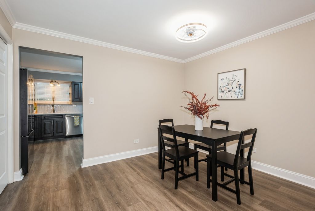 OWNER OCCUPIED BUILDING, rents not allowed. Don't miss this beautiful less than 2 year old remodeled unit. Spacious 2nd floor unit in owner occupied building. 2 bdrm, 1 bath, w/ patio off living room (patio door 2024), Custom new bathroom(2023), Custom new soft closing kitchen cabinets (2023) bright eat-in kitchen, stainless steel appliances, crown molding in living room and kitchen, large organizer closet, wall a/c units. Laundry and extra storage unit in building. Only 7 mins away from train and expressway. Pets welcomed. Awarded Naperville school district 203.