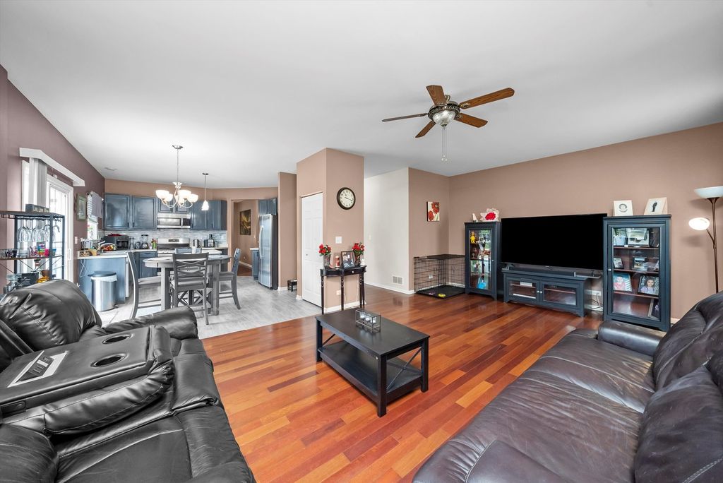 Welcome to a home that truly stands out-offering space, beauty, and a one-of-a-kind backyard experience. This expansive 5-bedroom, 2.5-bathroom residence sits on a premium oversized lot and features a custom-designed private lake right in your backyard a rare and serene retreat perfect for relaxing, entertaining, or simply enjoying the view. Step inside to discover a spacious layout with generous room sizes throughout. The main floor features an open-concept design, highlighted by Brazilian cherry hardwood floors flowing through the living room, hallway, and family room. The kitchen is filled with natural light, equipped with stainless steel appliances, and offers stunning views of the water-making every meal a scenic experience. Upstairs, the oversized primary suite includes a private bathroom and an expansive walk-in closet. Three additional bedrooms and a dual-sink full bathroom provide plenty of room for family or guests. A fifth bedroom is conveniently located on the main floor, along with a half bath, ideal for a home office or guest space. The full basement offers a vast blank canvas ready for your finishing touches, whether it's a home theater, gym, or additional living space. Located just 1.5 blocks from Troy Heritage Elementary and a short walk to the park. With easy access to I-80 and I-55, this location is as convenient as it is peaceful. If you're looking for a home that combines space, nature, and comfort-this is it. Come see the possibilities.