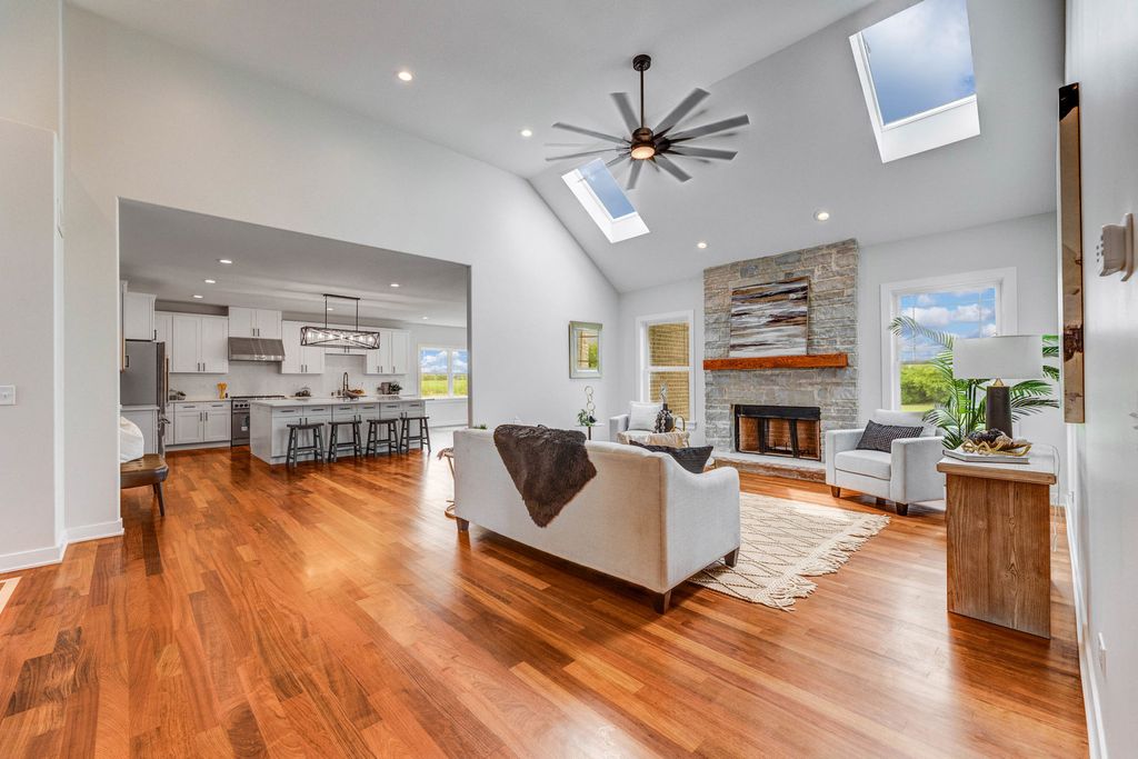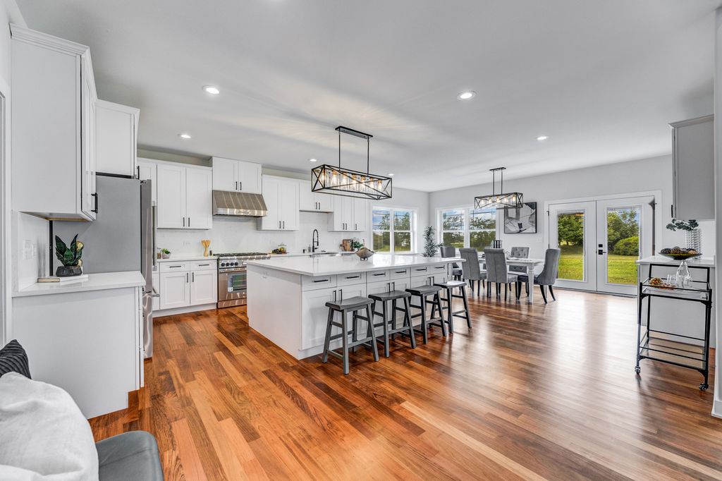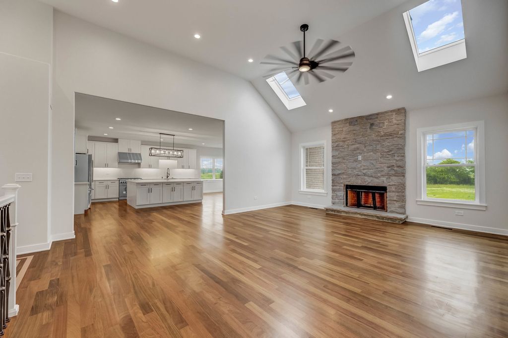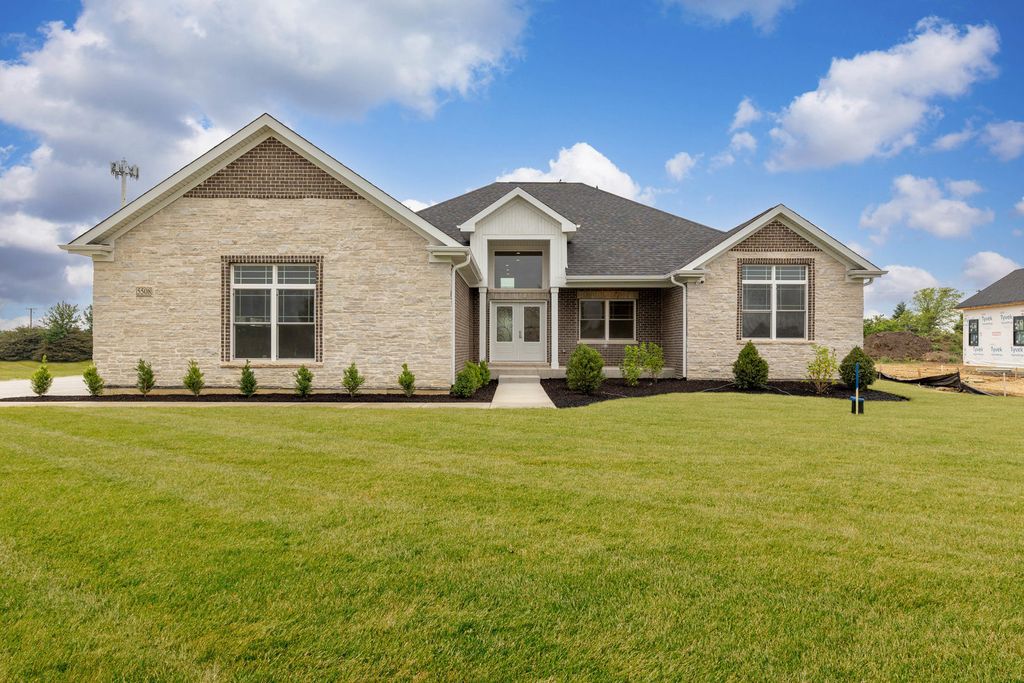 Exceptional Custom Ranch in the Prestigious Whitetail Ridge Golf Course Community Enjoy resort-style living in the highly sought-after Whitetail Ridge, home to an 18-hole championship golf course, elegant clubhouse, and a full-service restaurant and bar. This one-of-a-kind custom ranch showcases superior craftsmanship and meticulous attention to detail-far exceeding standard builder-grade finishes. The striking full brick and stone exterior makes a bold first impression, hinting at the luxury within. Step inside to soaring 15-foot vaulted ceilings and expansive windows that flood the space with natural light. Skylights elevate the bright, open feel, while a dramatic floor-to-ceiling stone fireplace creates a stunning focal point for relaxing or entertaining. At the heart of the home lies a chef-inspired kitchen, outfitted with top-of-the-line Thermador stainless steel appliances, a massive 9x6 quartz island, and a seamless quartz backsplash. The adjacent butler's pantry features a custom stone accent wall and floating shelves-perfectly blending function and style. Rich Brazilian cherry hardwood floors flow throughout the home, adding warmth and timeless elegance to every room. The spacious lower level offers 9-foot ceilings and roughed-in plumbing, providing endless potential for additional living space, including a future full bathroom. This remarkable home also includes the peace of mind of a 10-year full structural and systems warranty. Coverage includes the roof, cabinetry, countertops, doors, flooring, drywall, trim, fireplace, paint, ductwork, supply piping, electrical wiring, and basement foundation. Discover unmatched quality and refined living in Whitetail Ridge.