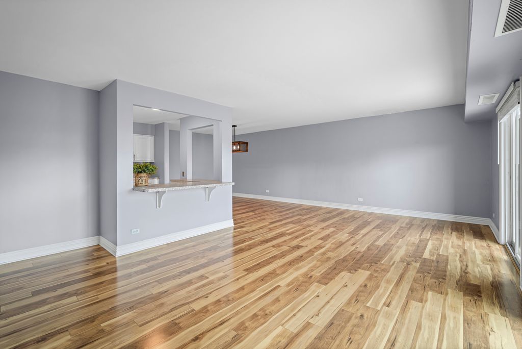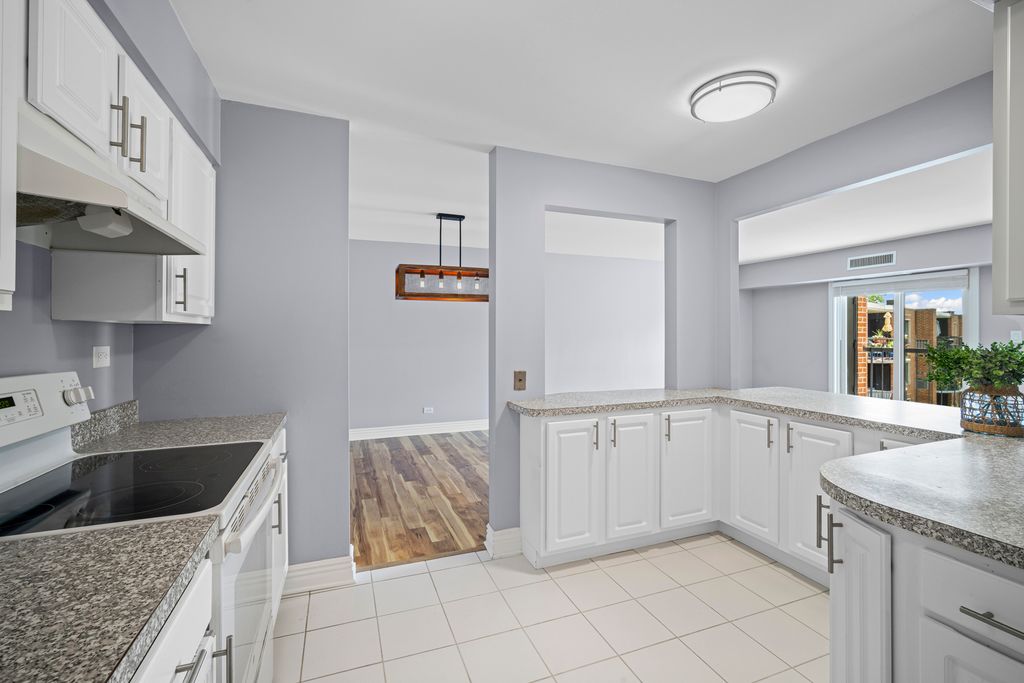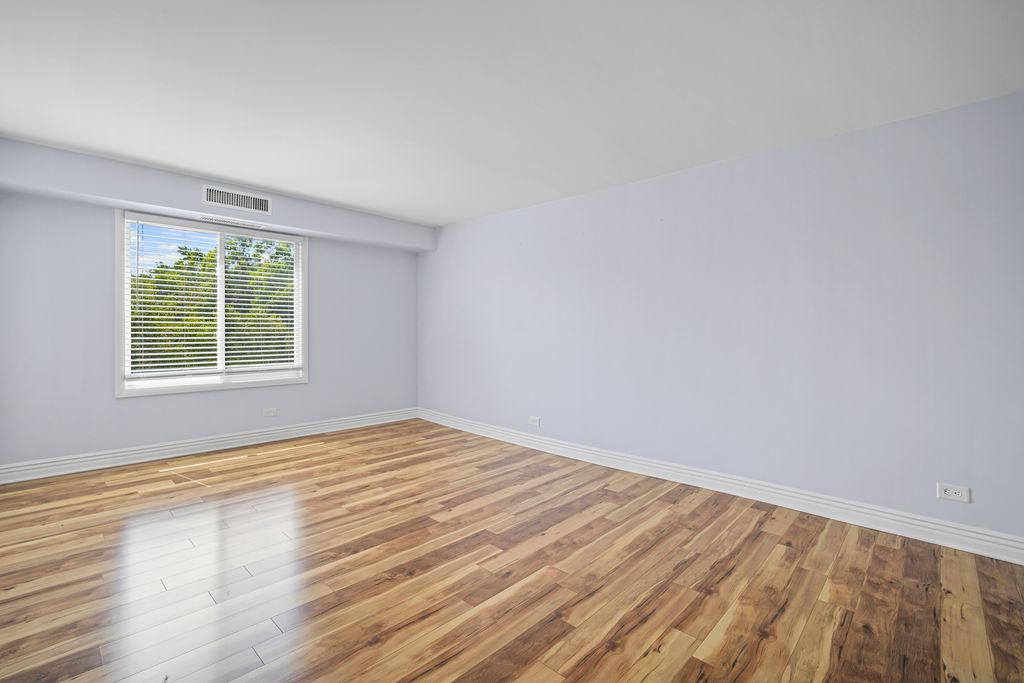 Welcome to this bright TOP floor unit located on the border of Arlington Heights and downtown Mount Prospect. Tons of natural light coming through from its desirable southern exposure! Inviting and spacious layout with gorgeous brand NEW wood laminate flooring throughout. Large living room with separate dining area that opens to an oversized balcony - serene views of beautifully maintained courtyard, perfect for relaxing. The white kitchen features abundant cabinetry and tons of countertop space, ideal for everyday cooking or hosting. Master Bedroom with private bath & walk-in closet. Extra storage unit is on the same floor plus additional storage closets on the balcony. Heated garage parking is included and plenty of extra exterior parking for guests! Professionally maintained complex with access to a full suite of amenities: outdoor pool, tennis courts, party room and fitness center. Beautiful area for taking a walk or enjoying the large open courtyard. Great school district and amazing location - just minutes from the Metra, expressways (I-90/53), tons of shopping, restaurants, parks, and downtown entertainment. A great opportunity to enjoy top-floor privacy, natural light, and resort-style living all in one place! Investors welcome.