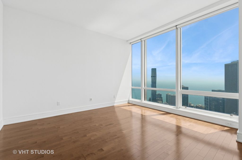 Spectacular panoramic views looking east to Lake Michigan and the Chicago River and south over Millenium Park and to the shoreline of Indiana await you in this marvelous 1017 sq ft one bedroom home with a fabulous kitchen outfitted with Italian Snaidero cabinetry and top appliances one expects of SubZero, Miele and Wolf along with a gracious-sized primary bath offering a tub and large separate shower; handsome wood floors through-out; a guest powder room and, of course, an in unit washer and dryer. High ceilings and light and view-filled floor to ceiling windows add to the drama of this home in the sky. Full amenities abound in this over the top service oriented building including 24 hour concierge, the five star Trump hotel including a beautiful indoor pool and 14,000 sq ft spa and gym. A pet friendly building including a wonderful dog park attached. A deeded parking space included. Don't miss this opportunity for a high in the sky 75th floor Chicago home.