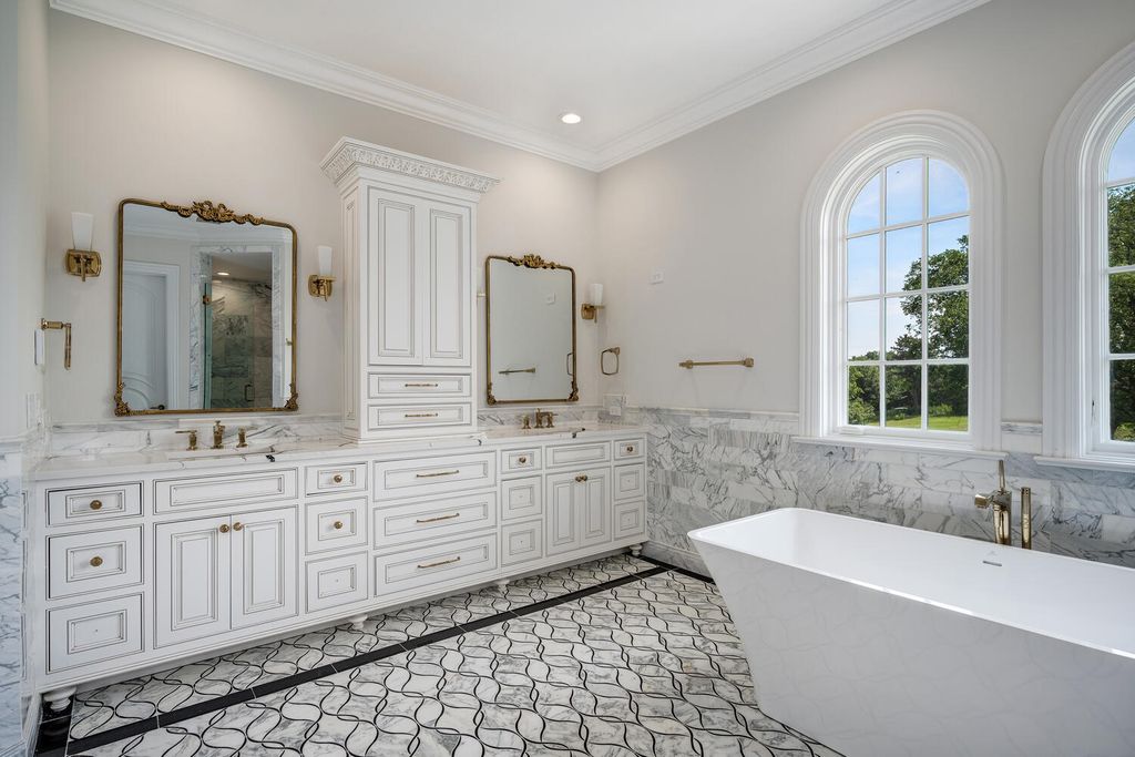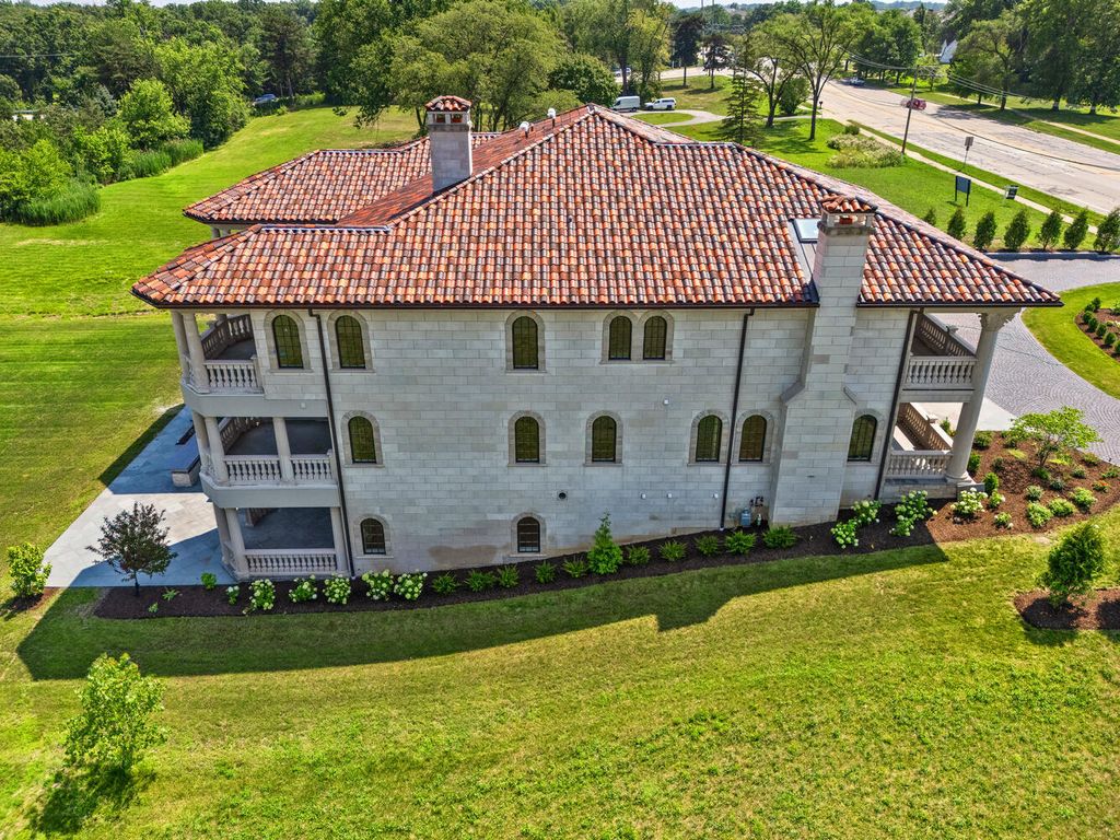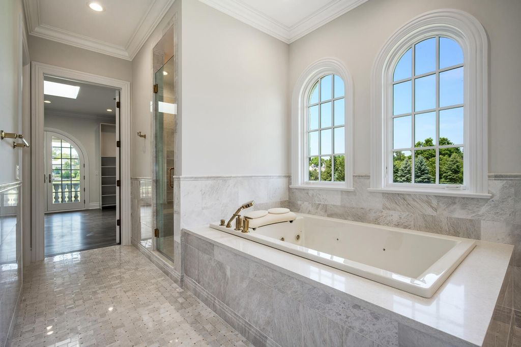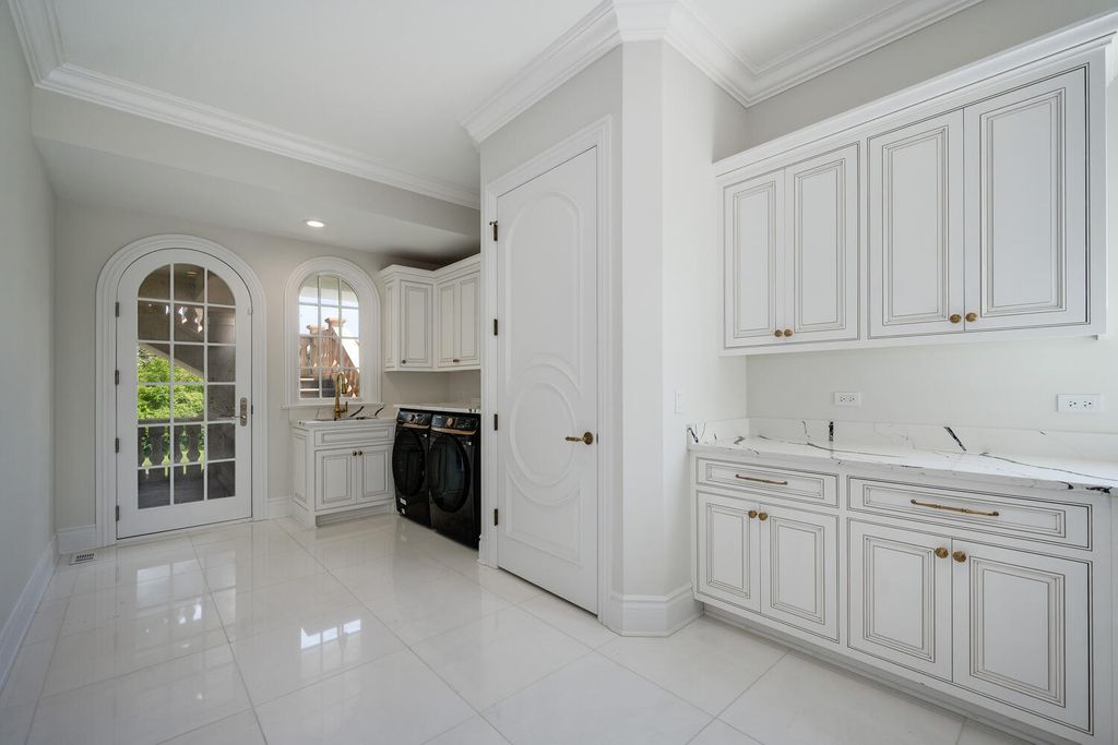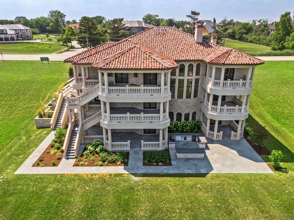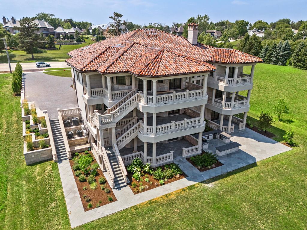 Welcome to 6413 County Line Road-an extraordinary new construction estate set on a full acre along Burr Ridge's prestigious Millionaires Row. Masterfully designed with timeless architecture and best-in-class finishes, this home offers a rare blend of luxury, comfort, and craftsmanship. The exterior makes an immediate statement, wrapped entirely in natural stone and limestone with a terracotta clay tile roof and Marvin windows throughout. Natural cobblestone pavers lead to a grand entrance framed by bluestone steps and manicured landscaping. Inside, you're welcomed by radiant-heated white Thassos marble floors with black inlays, soaring ceilings, and exquisite millwork throughout. The chef's kitchen is outfitted with Sub-Zero, Wolf, Thermador, and Bosch appliances, marble countertops with full slab backsplash, and custom cabinetry in a mix of painted, glazed, and stained finishes. A second full kitchen on the lower level adds exceptional functionality. Each bedroom is a private suite with its own balcony, while the primary bathrooms are outfitted in floor-to-ceiling marble with digital Kohler and Grohe fixtures and radiant heat. Throughout the home, 5" white oak flooring adds warmth, and four custom staircases with hand-forged wrought iron offer both elegance and flow. The lower level is designed for entertaining and wellness, featuring a full bar, state-of-the-art theater, sauna, steam room, and a custom three-level elevator. The four-car garage and driveway are both radiant-heated for year-round ease. Located near top-rated schools, country clubs, Hinsdale Hospital, and just minutes from downtown Hinsdale and Burr Ridge, this home delivers unmatched quality in one of Chicagoland's most coveted locations.