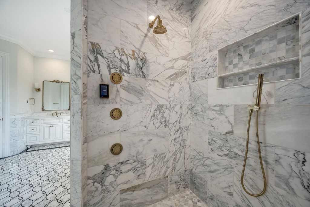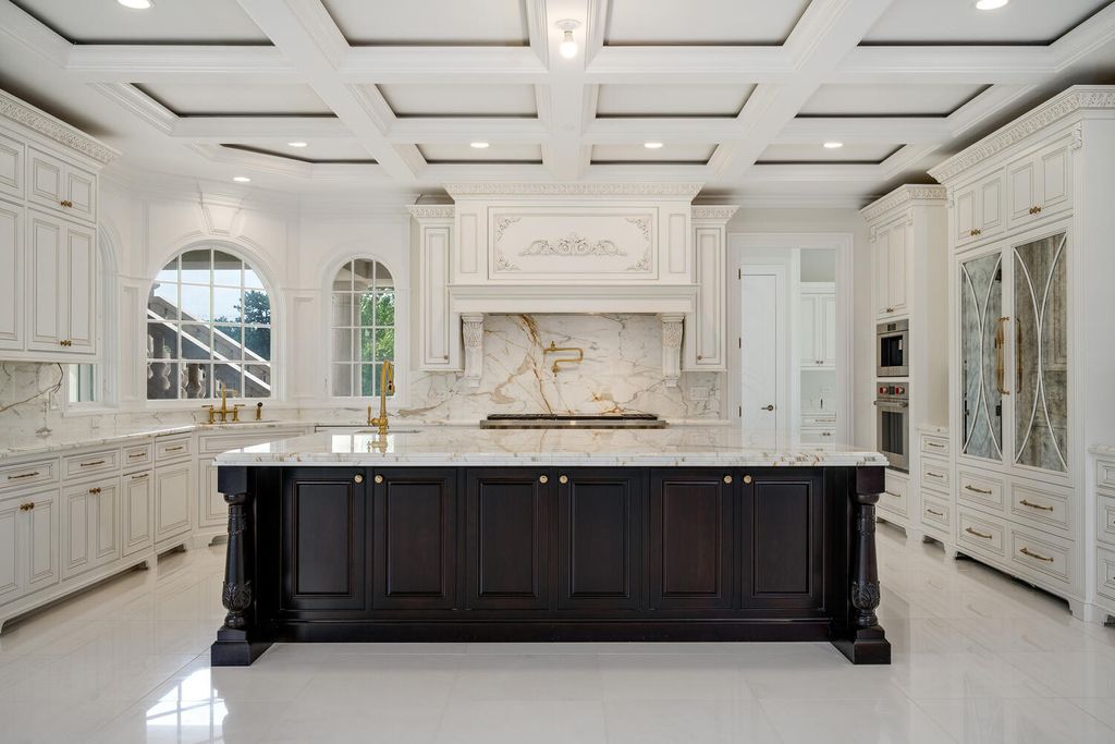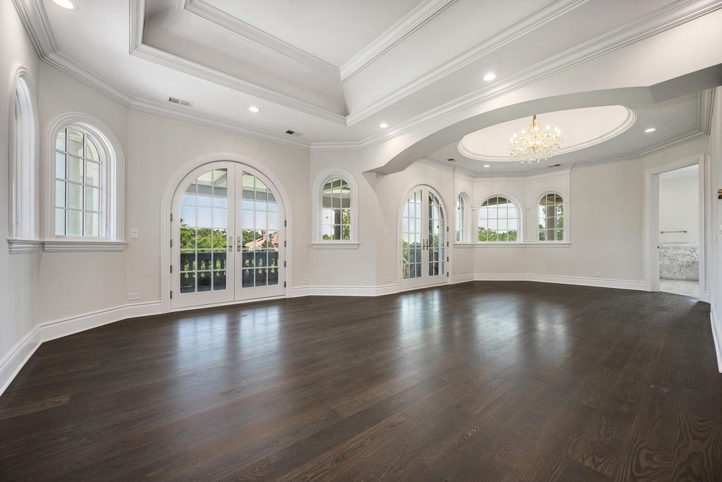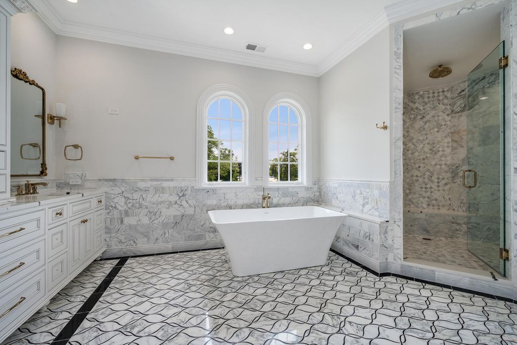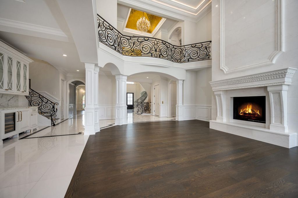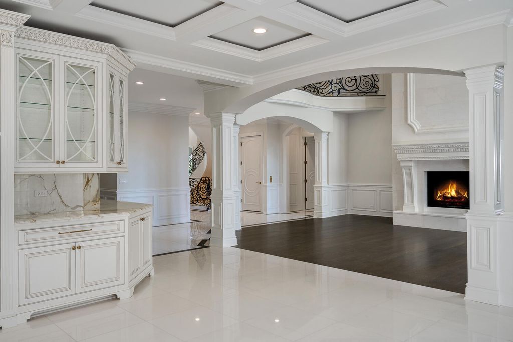 Welcome to 6413 County Line Road-an extraordinary new construction estate set on a full acre along Burr Ridge's prestigious Millionaires Row. Masterfully designed with timeless architecture and best-in-class finishes, this home offers a rare blend of luxury, comfort, and craftsmanship. The exterior makes an immediate statement, wrapped entirely in natural stone and limestone with a terracotta clay tile roof and Marvin windows throughout. Natural cobblestone pavers lead to a grand entrance framed by bluestone steps and manicured landscaping. Inside, you're welcomed by radiant-heated white Thassos marble floors with black inlays, soaring ceilings, and exquisite millwork throughout. The chef's kitchen is outfitted with Sub-Zero, Wolf, Thermador, and Bosch appliances, marble countertops with full slab backsplash, and custom cabinetry in a mix of painted, glazed, and stained finishes. A second full kitchen on the lower level adds exceptional functionality. Each bedroom is a private suite with its own balcony, while the primary bathrooms are outfitted in floor-to-ceiling marble with digital Kohler and Grohe fixtures and radiant heat. Throughout the home, 5" white oak flooring adds warmth, and four custom staircases with hand-forged wrought iron offer both elegance and flow. The lower level is designed for entertaining and wellness, featuring a full bar, state-of-the-art theater, sauna, steam room, and a custom three-level elevator. The four-car garage and driveway are both radiant-heated for year-round ease. Located near top-rated schools, country clubs, Hinsdale Hospital, and just minutes from downtown Hinsdale and Burr Ridge, this home delivers unmatched quality in one of Chicagoland's most coveted locations.