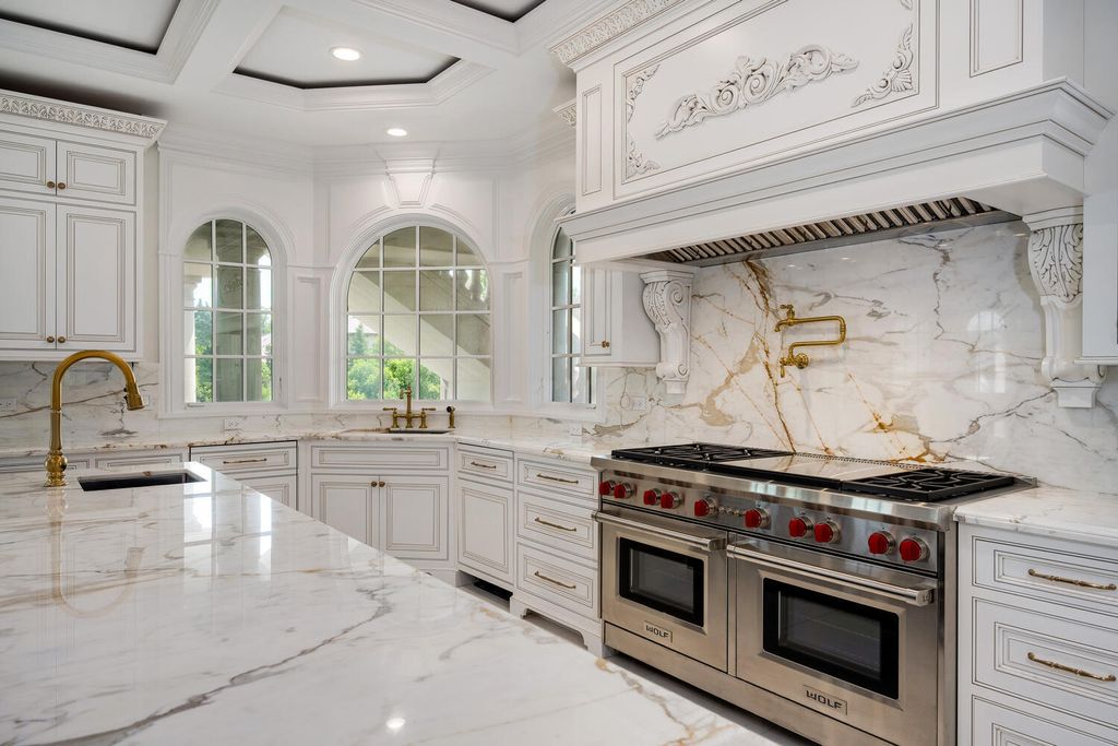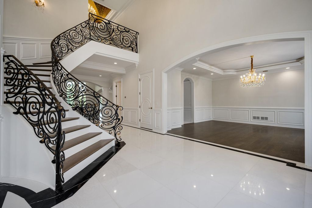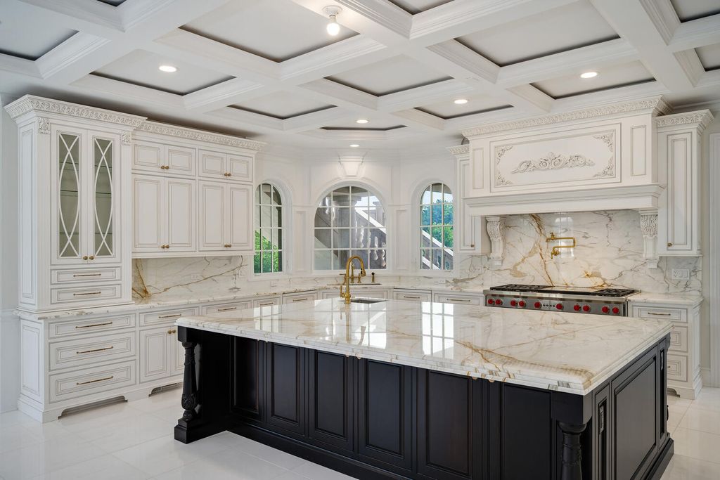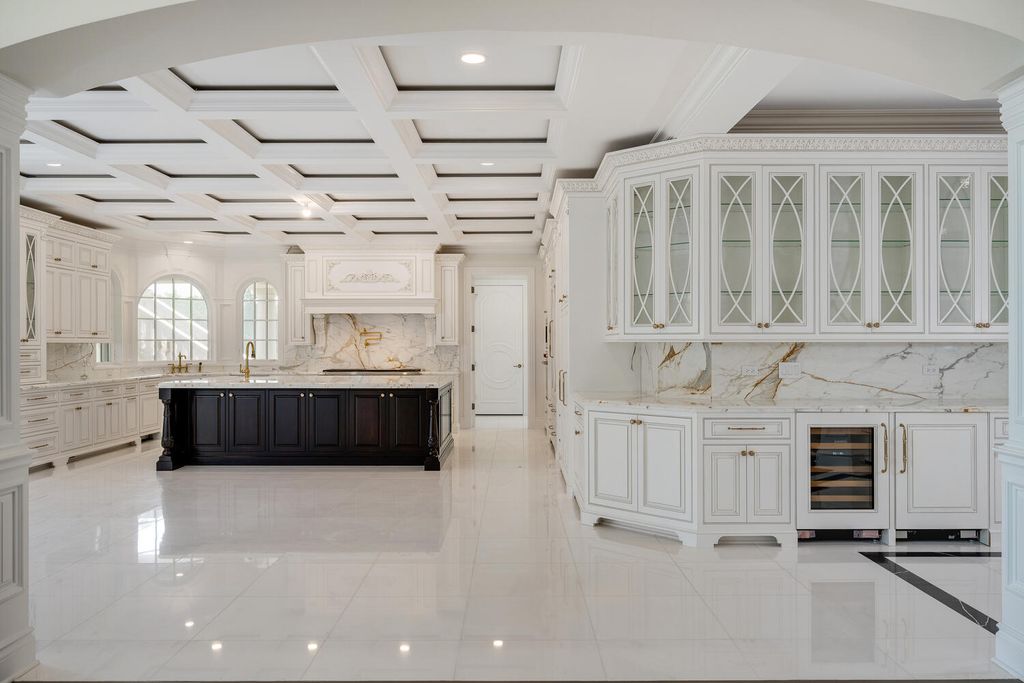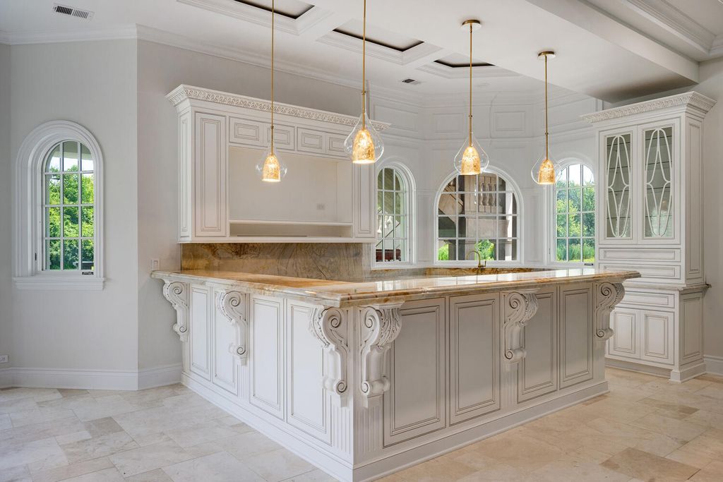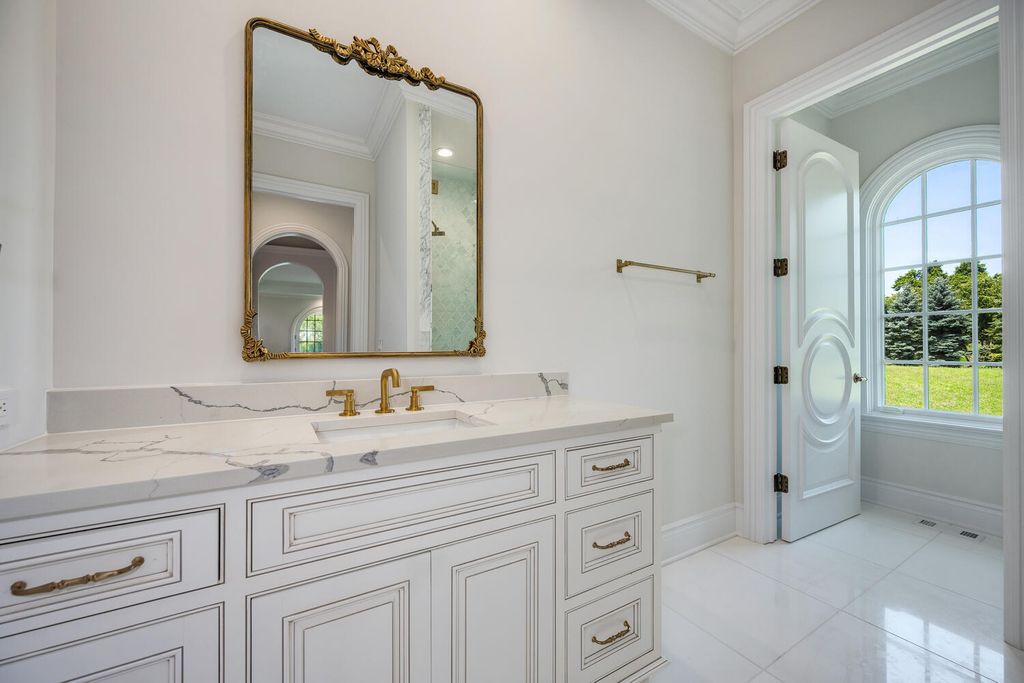 Welcome to 6413 County Line Road-an extraordinary new construction estate set on a full acre along Burr Ridge's prestigious Millionaires Row. Masterfully designed with timeless architecture and best-in-class finishes, this home offers a rare blend of luxury, comfort, and craftsmanship. The exterior makes an immediate statement, wrapped entirely in natural stone and limestone with a terracotta clay tile roof and Marvin windows throughout. Natural cobblestone pavers lead to a grand entrance framed by bluestone steps and manicured landscaping. Inside, you're welcomed by radiant-heated white Thassos marble floors with black inlays, soaring ceilings, and exquisite millwork throughout. The chef's kitchen is outfitted with Sub-Zero, Wolf, Thermador, and Bosch appliances, marble countertops with full slab backsplash, and custom cabinetry in a mix of painted, glazed, and stained finishes. A second full kitchen on the lower level adds exceptional functionality. Each bedroom is a private suite with its own balcony, while the primary bathrooms are outfitted in floor-to-ceiling marble with digital Kohler and Grohe fixtures and radiant heat. Throughout the home, 5" white oak flooring adds warmth, and four custom staircases with hand-forged wrought iron offer both elegance and flow. The lower level is designed for entertaining and wellness, featuring a full bar, state-of-the-art theater, sauna, steam room, and a custom three-level elevator. The four-car garage and driveway are both radiant-heated for year-round ease. Located near top-rated schools, country clubs, Hinsdale Hospital, and just minutes from downtown Hinsdale and Burr Ridge, this home delivers unmatched quality in one of Chicagoland's most coveted locations.