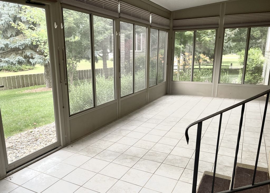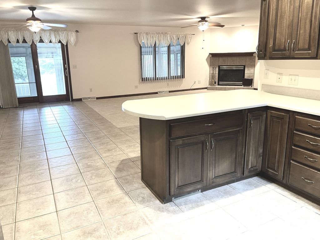 A rare find in the vibrant Golfview Estates community! This gorgeous brick & vinyl ranch employs a well-planned open concept living area with a split bedroom floorplan to maximize living space! An oversized 3 car garage (34x27) is expanded with a versatile (32x12) stall for an additional vehicle, boat storage or workshop. The kitchen is welcoming and highly functional with a large breakfast bar and ample cabinetry. A separate dining area provides space for more formal entertaining, while being open to the living area featuring an aesthetically pleasing fireplace with gas logs for ambiance and convenience! The Primary suite is spacious with a large walk-in closet, while providing a large bathroom complete with both a luxurious jetted tub and a step-in, seated shower. The 2nd and 3rd bedrooms are near a full bath with a tub/shower combination. Main level laundry! A gorgeous open stairway welcomes you to the expansive lower level living space, which includes a large family room, a separate room with the potential of an office or bedroom space, a bonus room, finished storage room with custom-built shelving, the 3rd full bath featuring a step-in seated shower, and utility room. An airy 3-season room provides views and connection to the outdoors in a protected environment! A concrete patio or dog-run area and matures trees and landscape complete the backyard. Furnace and A/C (2018) Freshly painted (2025) Living room carpet (2025). This home is a must see!