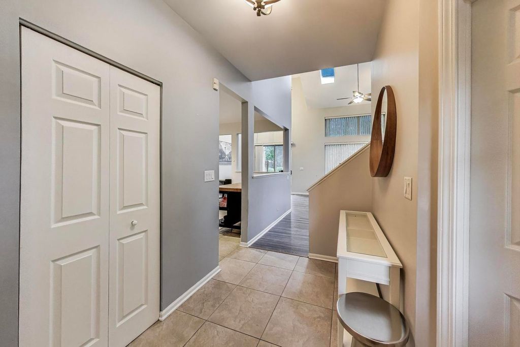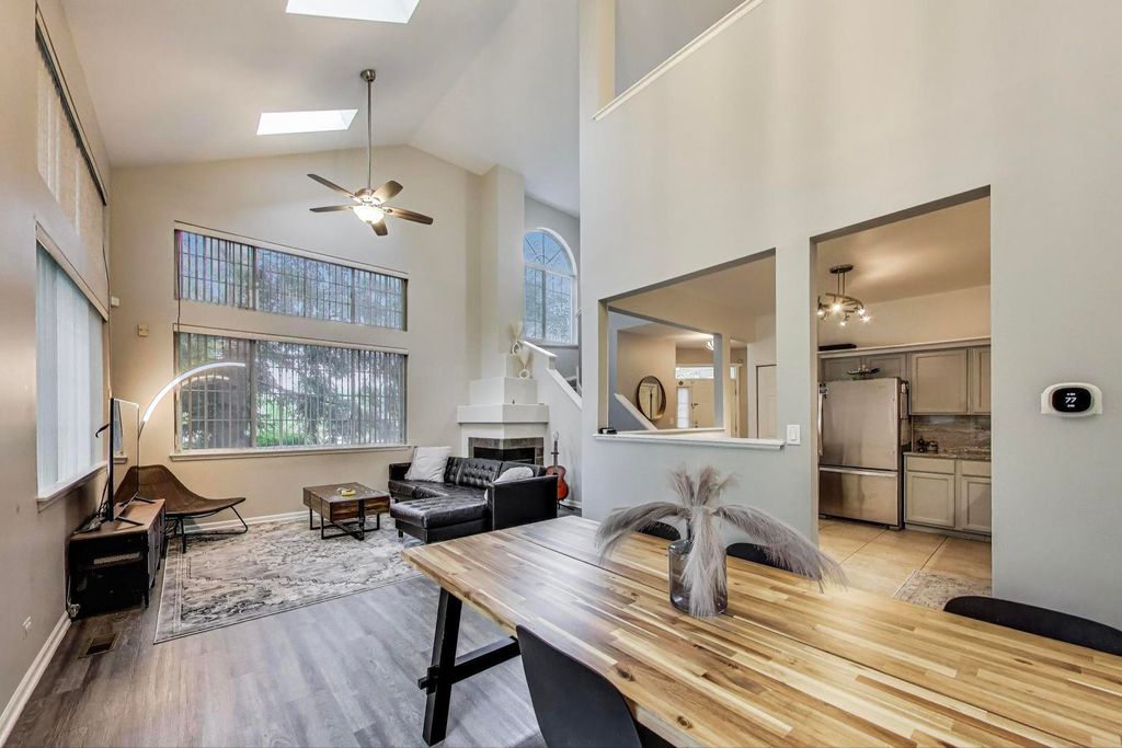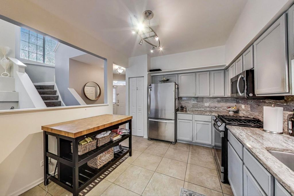Rarely Available End Unit Townhome with Loft in Sought-After Blackberry Creek! This light-filled, two-story townhome offers dramatic cathedral ceilings with an expansive open-concept floorplan making it perfect for entertaining. The inviting first-floor living room showcases a corner fireplace with a tiered mantel, vaulted ceilings, countless windows for natural light while in arm's length to the separate dining area that includes sliding doors that lead to the private outdoor patio and green space. The refreshed kitchen includes gray cabinetry, newer granite countertops with same solid surface backsplash, all newer Stainless Steel Appliances along with extra room for an eat-in area setup. The convenient powder room is located just off the entry adjacent to the laundry room with newer Whirpool Washer and Dryer. Upstairs, an open staircase leads to the spacious loft-ideal for a home office, playroom, or lounge that overlooks the main living area. The primary bedroom features vaulted ceilings, skylights, a walk-in closet, full shared en-suite bath that has hallway access. The generously-sized second bedroom offers ample closet space as well. Recent improvements within the past six years include the Roof, Furnace with Zoned Smart Thermostat, Air Conditioner, All Kitchen and Laundry Appliances. Lastly, the 2-car Garage for this price-point is rare to find and offers extra storage and parking. Located in a newer / quiet Subdivision all within minutes from expressways, schools, shopping, nature preserves and golf courses. Priced accordingly; schedule your showing today!