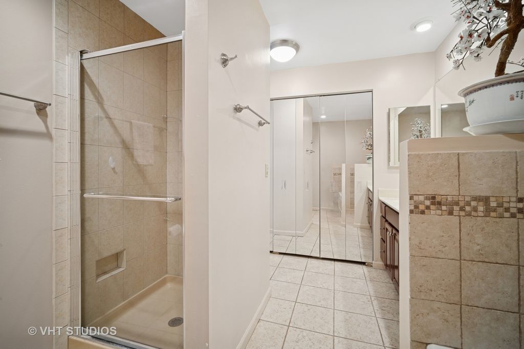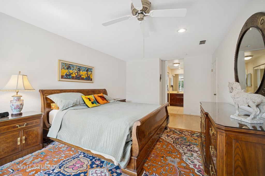 Rarely available! This spacious first floor unit is envied by those who wish to have large outdoor space. This unit comes with an enormous patio and amazing views of the pool and center of the community. The layout is a much-desired split floor plan with a bedroom suite at each side of the great room. The huge great room has gas start/gas log fireplace, and open access to the patio. Kitchen has abundant cabinetry, convenient pantry and eating area in front of the patio doors giving access to the attached gas grill. Laundry in unit has full size machines. If you haven't been The Condos of Northbrook before, know that the construction is excellent and units don't suffer from noise issues. This unit has new sliding doors/windows which adds to quiet and insulation. Each building in the complex has its own exercise room, storage rooms, and an open sundeck on the top floor. The complex is well managed, adjacent to Northbrook Court and aroiund the corner from transportation, shopping, restaurants and more. Come and make this your new home.