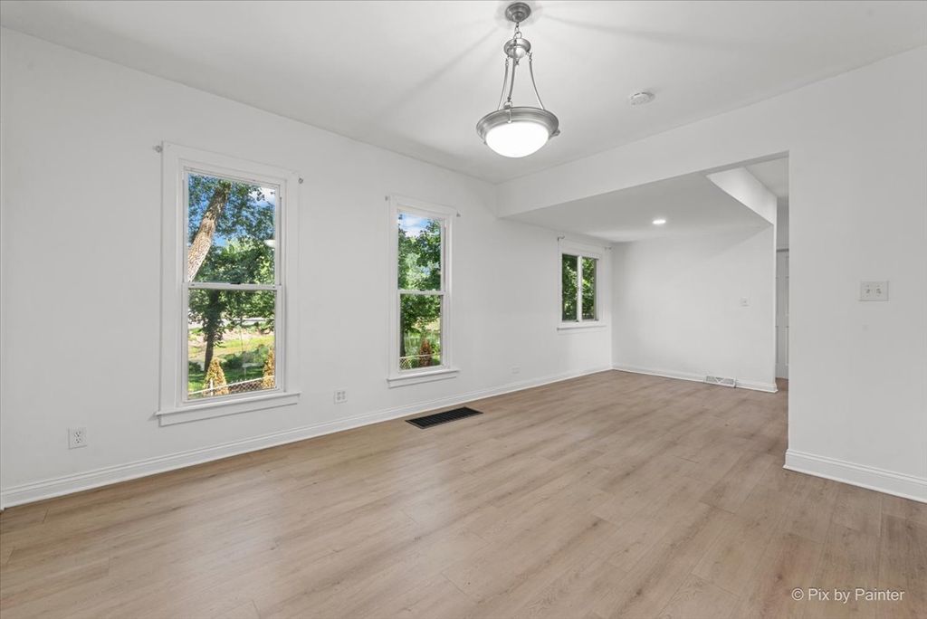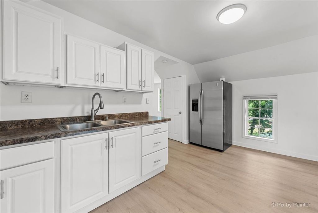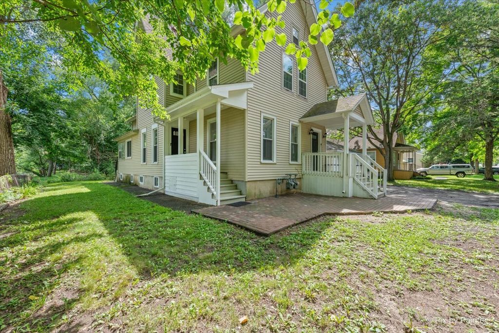 Charming Vintage Home on a Serene, Wooded Lot with Pond Views! Rehabbed in January 2023, this beautifully refreshed two-story home blends timeless charm with modern updates, all nestled on a tranquil lot with stunning pond views and mature trees. Step inside to tall ceilings, fresh paint, luxury vinyl plank flooring, and updated light fixtures throughout. The spacious layout includes 5 bedrooms and 2 full bathrooms, offering room for everyone. The main kitchen features rich cabinetry, granite countertops, stainless steel appliances, and a large center island-perfect for everyday living and entertaining. Enjoy the added flexibility of a second kitchen, ideal for related living, in-law arrangements, or extra hosting space. Both bathrooms are tastefully updated, and large windows fill the home with natural light and peaceful views. Additional highlights include a full unfinished basement ready for your ideas, a two-car detached garage, and ample driveway parking. Outside, relax in your wooded backyard sanctuary overlooking a quiet pond and backing to a nature preserve while still being just minutes from dining, shopping, expressways, and public transportation. A rare blend of space, updates, and setting-this one is a must-see!