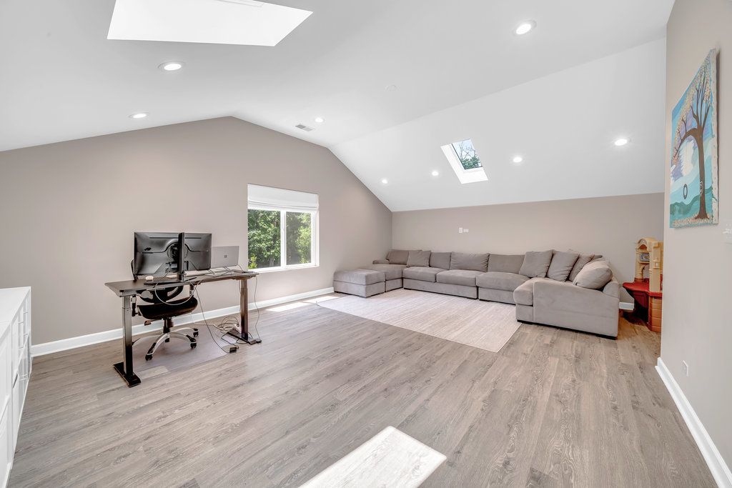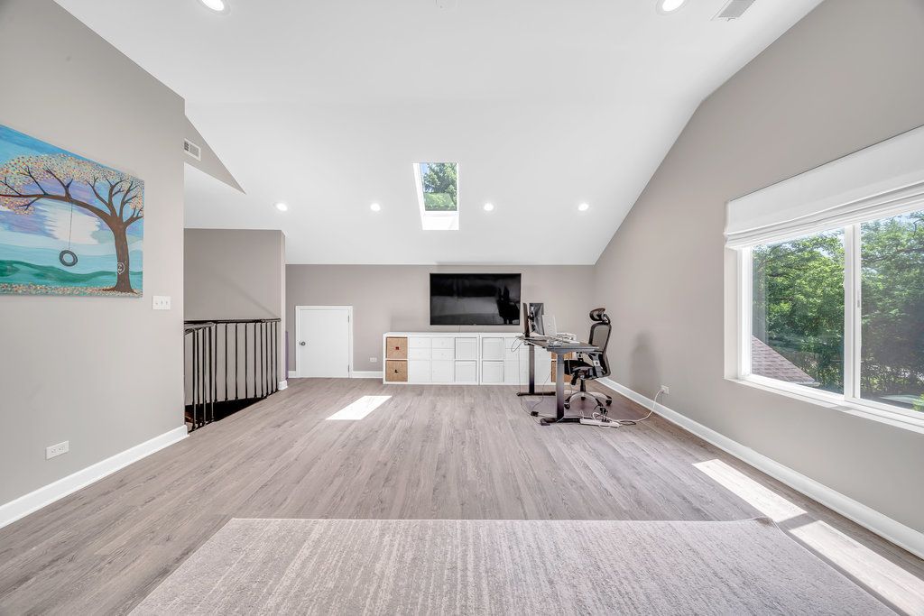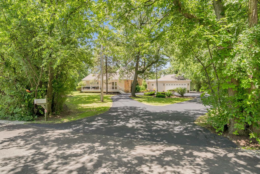 Discover this rare find in the sought after award-winning Palos Park School District 118 and nearly an acre of secluded land. Here you will find a beautiful, open layout ranch home with an incredible multi-purpose room on the second floor featuring its own dedicated furnace and AC, soaring ceilings, a huge picture window and skylights which fill this room with an abundance of natural sunshine. This room can be dedicated as a forth bedroom, a family room and has so much space it can be a private office, an art studio and a work-out room combined! Let's not forget this is where you will find the third bathroom (A shower can easily be added, if wanted) ~ the posiblilities are endless. The thoughtfully designed spiral staircase entering this space maximizes the first floor floor plans leaving you with an oversized laundry/mud room. This home is perfectly positioned with a peaceful setting facing Timberlane and 127th St. where there is very little traffic. Let's take a deeper dive; the master bedroom is a spacious retreat with a newer 5 Star, spa-like ensuite bath, providing privacy with the other two main floor bedrooms situated on the opposite side of this floorplan. Stunning hardwood floors flow throughout the main level opening up to the beautiful bright and airy kitchen directly to the dining room and main living space which features a gas fireplace for cozy nights and is great for entertaining. The serene environment extends to a breathtaking backyard which can be accessed from the master bedroom and dining room to bring the outside in and ideal for relaxation and entertaining or just loosing yourself in nature. A maintenance-free front porch adds to the home's curb appeal while a circular driveway offers abundant parking for guests. The oversized, attached, heated 2.5-car garage with epoxy floors is perfect for car enthusiasts or extra storage. This home is located near many amenities that Palos Park has to offer: The Little Red School House, the famous Plush Horse for an ice-cream treat, Swallow Cliff, walking and bike trails ~ and beautiful forest preserves for all you work-out nature lovers. You wil feel like you are living in the country and yet so close to everything! This home also offers "Special Financing" ask for details!