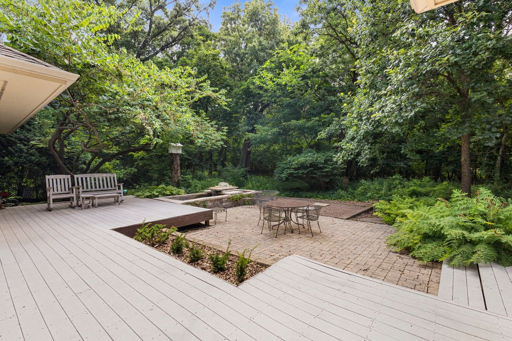 This stunning home is a showcase of Frank Lloyd Wright-inspired Prairie style, thoughtfully designed to harmonize with its natural surroundings. Situated on a quiet cul-de-sac, the home's free-flowing layout was intentionally crafted for comfortable and connected family living. A striking stained glass front door welcomes you inside, where the architecture immediately captivates, drawing you inward and upward. The main level features beautiful hardwood floors, soaring 10-foot ceilings, and a functional floor plan designed for modern living. Highlights include a dedicated first-floor office, a cozy library, a spacious primary suite with an elegant bath, a well-appointed kitchen with an adjoining eating area, and a spectacular great room with 19-foot ceilings and a dramatic wall of windows that frame views of the lush backyard - seamlessly blending structure and landscape. The second level offers three generously sized bedrooms, each with large closets, a Jack and Jill bath, and a private en suite. A walk-up staircase leads to an unfinished upper level. The inviting lower level, complete with a two-sided fireplace, offers the perfect setting for extended family fun or entertaining guests. Kitchen has maple cabinetry, granite countertops, stainless steel appliances, wet bar with beverage fridge and walk in pantry. The office has double French doors. There is a cheery sunroom off the kitchen with skylights and access to the deck, brick paver patio, and tranquil waterfall. The catwalk overlooking the great room joins the third bedroom with en suite bath. The lower level has radiant floor heat, ample space for recreational activities, additional full bath, and access to three car garage. Conveniently located near shopping, dining, major expressways, and the vibrant Burr Ridge Village Center, this home masterfully combines architectural beauty, thoughtful design, and everyday functionality.