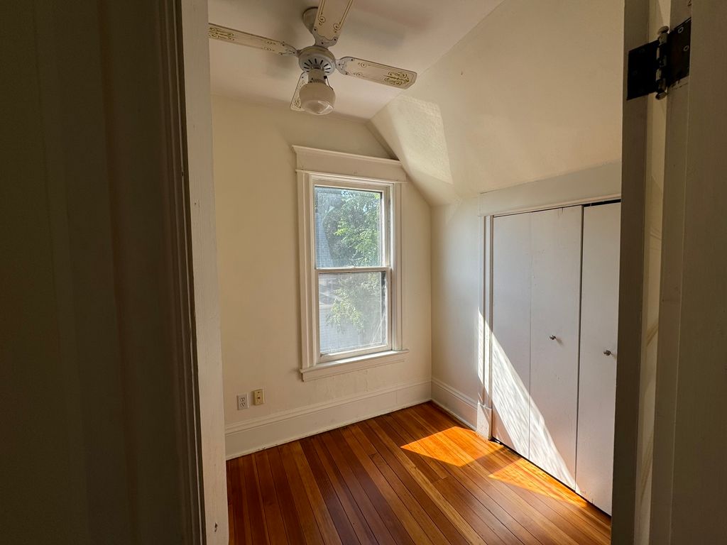 Step back in time to this adorable, well maintained home. This 3 bedroom, 2 bath home features a one car garage ( new roof 2025) and a fenced yard. The spacious rooms boast 9' ceilings and include a parlor for added charm. Beautiful original dentil woodwork adds character. There is new laminate flooring in the dining room and kitchen. Upstairs you will find three bedrooms and a large walk-in closet or a playroom. The original cast iron claw foot tub adds vintage appeal. Additional updates include a newer furnace and water heater. The roof was replaced in 2011.