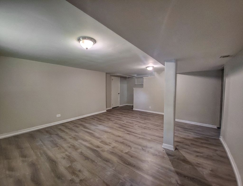 Brick exterior, arched doorways, and a classic layout set the tone for this well-kept home. Step into a bright living room with oversized front windows, then flow into a defined dining space with charm and character throughout. The kitchen includes plenty of cabinet storage along with a refrigerator and stove, offering room to make it your own. Upstairs, you'll find two spacious bedrooms and a full bath. Downstairs, a finished basement nearly doubles the living area-featuring a wide-open space perfect for movie nights, workouts, or hosting game day. A bonus finished room adds flexibility for a home office or guest space. Out back, enjoy a shaded yard framed by mature trees-ideal for relaxing, grilling, or stretching out. The attached one-car garage adds function and storage to this versatile layout. Whether you're starting fresh or looking for space to grow, this home delivers comfort, convenience, and solid potential.