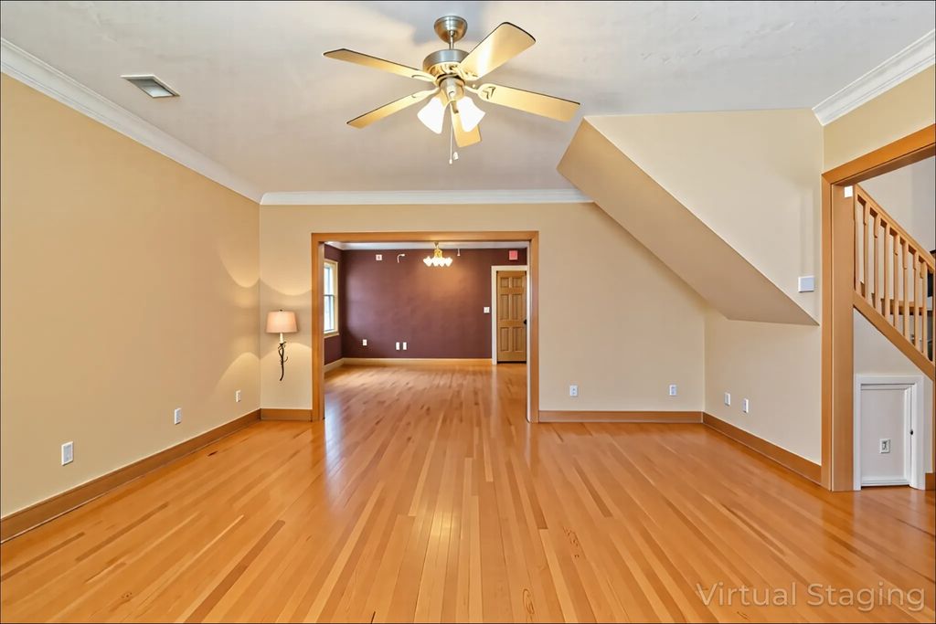 Welcome to this charming all-brick Berwyn home offering 3 bedrooms and 3 full baths. Hardwood flooring runs throughout, enhancing the warmth and elegance of the home. The spacious living room features large windows that fill the space with natural light, complemented by classic crown molding. A formal dining room leads into a generously sized eat-in kitchen, complete with stainless steel appliances and a bright, open breakfast room-perfect for everyday living and entertaining. The main floor includes two comfortable bedrooms and a full bath, while the second level boasts a large open area ideal for a family room, plus a versatile space that can serve as an office, playroom, or guest area. The expansive primary suite features a luxurious en suite bath with a whirlpool tub, separate shower, and double vanity. The home also includes an unfinished basement with a laundry room, offering great potential for customization. Step outside to a spacious back deck and fully fenced yard-perfect for outdoor gatherings. A detached 2-car garage completes this property. Don't miss this wonderful opportunity!