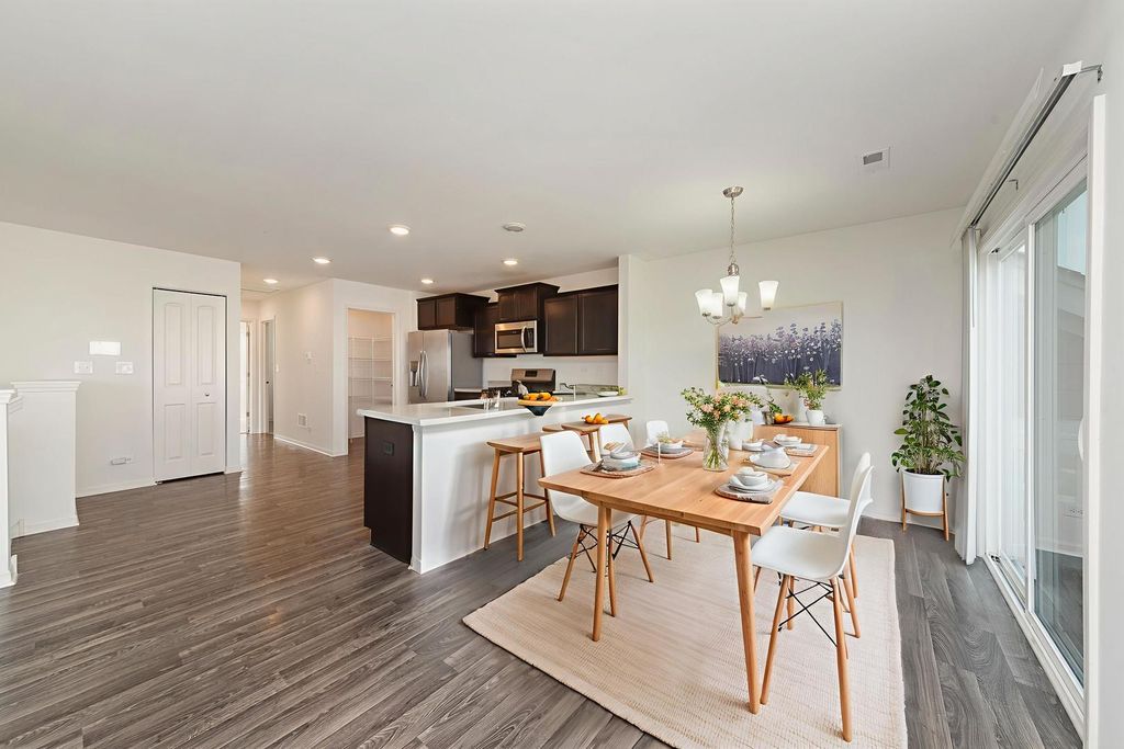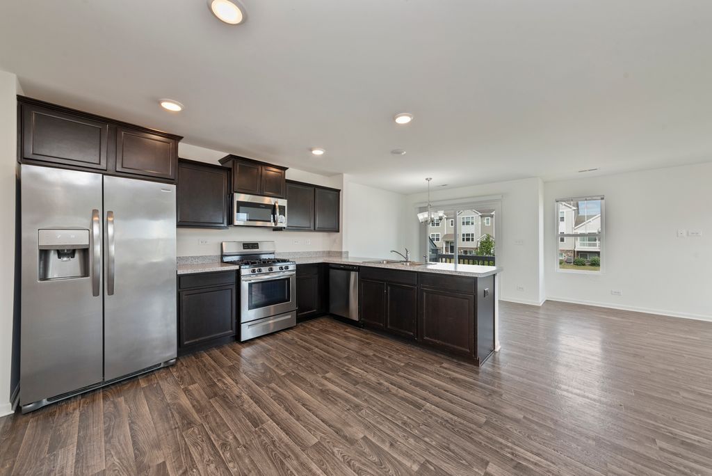 Welcome to this move-in-ready end-unit townhome in the desirable Tall Oaks community, where modern design meets everyday functionality. Offering nearly 1,700 square feet of living space, this home features 3 bedrooms and 2 full bathrooms spread across a flexible and open layout. The main level is filled with natural light and showcases a spacious kitchen outfitted with espresso-finished cabinets, stainless steel appliances, ample counter space, and a walk-in pantry that's both practical and spacious. The kitchen flows effortlessly into the dining area and living room, creating a warm and welcoming atmosphere for gatherings or quiet nights at home. Step through the sliding glass doors to your private balcony and take in peaceful views of the surrounding green space. Two bedrooms and a full bathroom complete the main floor, while the primary bedroom includes a large walk-in closet to meet all your storage needs. Downstairs, the finished lower level offers even more possibilities with a third bedroom, a second full bath, and a versatile bonus area perfect for a home office, gym, media room, or guest space. A two-car attached garage adds convenience, and the location offers easy access to shopping, dining, and major highways. Located in the top-rated District 301 school system, this home is a rare opportunity to own one of the limited end units with open green space views in Tall Oaks.