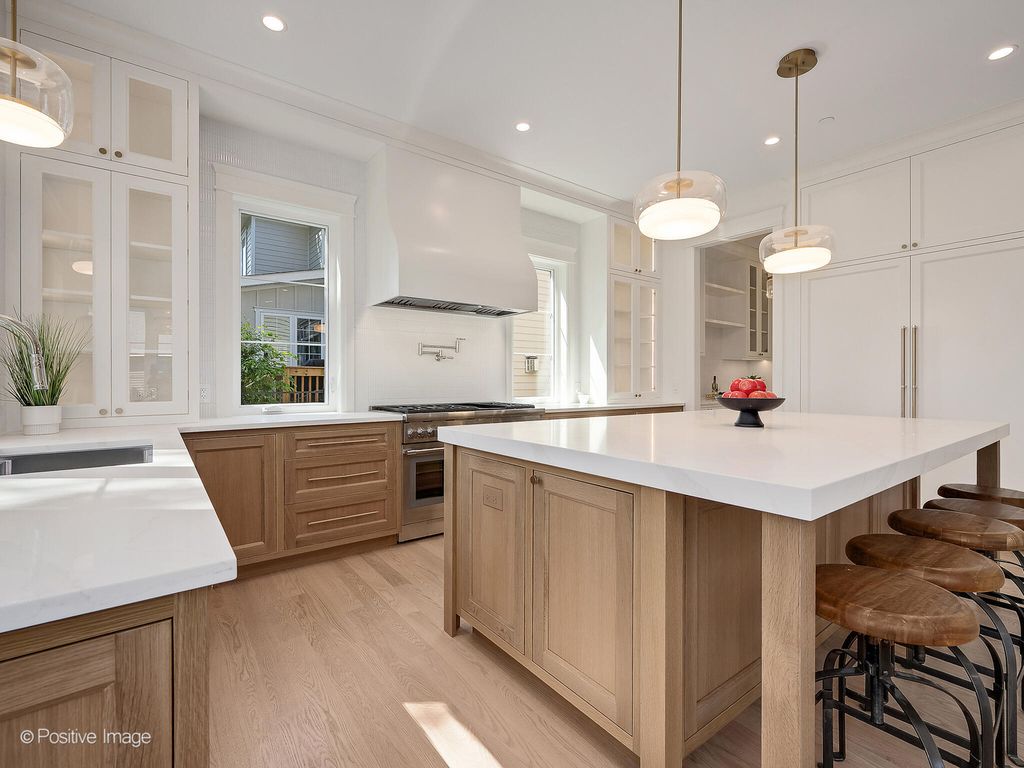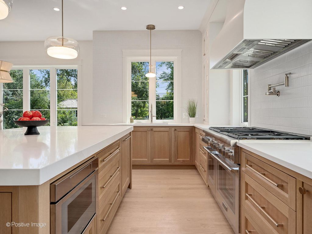 Experience elevated living in this exceptional 6-bedroom, 5.1-bathroom new construction smart home on a rarely available 214-foot-deep lot ideally located near downtown Western Springs, recently rated the #1 safest and wealthiest city in the USA! With a full finished basement and oversized 2 1/2 car attached garage, this residence is the model of luxury, offering impeccable craftsmanship, designer selections, and state-of-the-art technology. Step through the solid mahogany front door into a light-filled interior with soaring 10-foot ceilings, 8-foot doors, a thoughtfully designed floor plan, and clear sight-lines to the expansive back yard setting. The private office and formal dining room set a sophisticated tone from the moment you enter. At the heart of the home lies a dream kitchen, an entertainer's and chef's paradise, featuring a 48" Thermador 6-burner range with griddle and custom-built vent hood, rift-sawn oak cabinetry with inset doors and LED lighting, 60" paneled Thermador refrigerator and freezer columns, and a striking Calacatta quartz island with a mitered 2" edge. A walk-in pantry showcases full custom cabinetry with LED-lit oak shelving. Fine finishes such as solid brass Emtek hardware, Kohler Edalyn fixtures, imported tile, and designer pendant lighting complete the presentation. The open-concept living area features a gas fireplace framed in natural limestone and custom oak paneling. A 3-panel sliding glass door connects you seamlessly to a spacious patio and an exceptionally large, lush backyard offering privacy and endless outdoor possibilities. Between the kitchen and formal dining room, a stunning quartz wet bar includes a paneled beverage fridge, ice maker, bar sink, LED-lit display cabinetry, and ample storage, perfect for entertaining. The mudroom, finished with imported tile, includes built-in bench seating, a storage closet, and a sink cabinet, providing a direct and stylish connection to the oversized garage. Upstairs, the home continues to impress with multiple en-suite bedrooms, and a thoughtfully appointed laundry room featuring dual washer/dryer towers. The expansive Primary Suite boasts vaulted ceilings, generous walk-in closets, and a spa-caliber bath complete with a curbless glass shower enclosure, Kohler shower system, quartz bench, and modern freestanding soaking tub with matching tub filler. Warm oak cabinetry, heated digital floors, and dramatic imported tile finishes complete this serene retreat. Bedroom #2 offers a private en-suite bath with marble tile, curbless glass shower, designer accents, and premium Artos fixtures. Bedrooms 3 and 4 share a well-appointed hall bath with the same elevated finishes and a tub/shower combo. The finished third level offers a flexible 5th bedroom with an additional en-suite bath, ideal for guests, 2nd office, or a home studio. The full finished basement adds a 6th bedroom, 5th full bath, and spacious living zones including a family/media room wired for 5.1 surround sound, a large recreation area, storage room, and a rough-in for a future wet bar. Modern living is seamlessly integrated with smart home features: Yamaha WiFi amplifier, Sonance ceiling speakers, surveillance cameras, Cat6 wiring with multiple access points, digital TV antenna, EV charging outlet, and a full lawn irrigation system. This rare offering blends sophistication, cutting-edge technology, and timeless design in one of Western Springs' most convenient locations. A home that must be experienced in person to be fully appreciated. Vibrant neighborhood with many new construction projects underway, with easy access to the 47th St retail corridor, Burlington Ave shopping, Metra Station, and highly rated schools with optional selection for Field Park or Forest Hills elementary (2023 National Blue Ribbon) which is a unique feature to the Ridge Acres neighborhood.