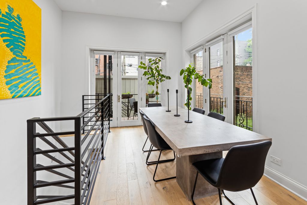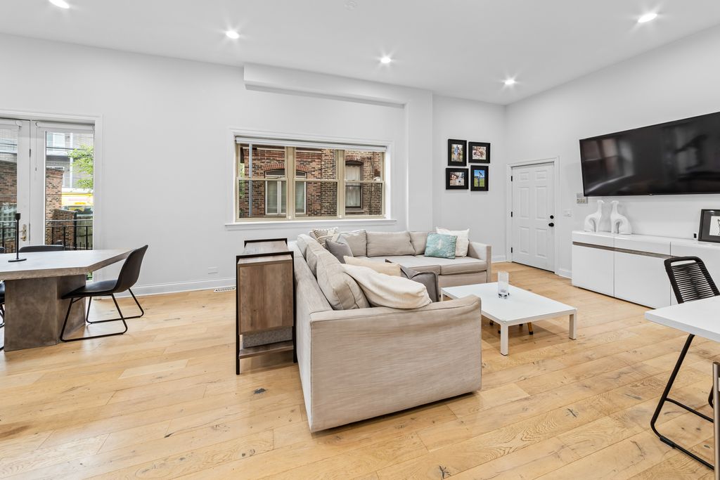 Welcome to Your Dream Home in Wicker Park!Step into this stunningly renovated 3-bedroom, 3-bath duplex that seamlessly blends luxury, function, and style. From the moment you enter, you're greeted by soaring ceilings, abundant natural light, and an expansive open floor plan that creates an impressive sense of space. The spacious living area flows effortlessly into a chef's kitchen designed for both beauty and performance. It features sleek, European-style flat-panel cabinetry, high-end Bosch stainless steel appliances, Quartz countertops with a dramatic waterfall edge, and a striking full-height Quartz backsplash. A thoughtfully relocated laundry room to the lower level allows for the addition of a generous walk-in pantry, and a built-in beverage center at the peninsula makes entertaining a breeze. Adjacent to the kitchen is a dedicated dining space with views of one of the home's two private outdoor areas-perfect for summer gatherings or morning coffee. The main level also includes a large bedroom with ample closet space including a custom overhead storage cabinet to take advantage of the tall ceilings. A full bathroom with a walk-in shower and designer finishes serves this level, offering comfort and style for guests or family. Downstairs, the cozy and inviting family room opens to a second, wraparound private patio, creating seamless indoor-outdoor living. The expansive primary suite is a true retreat, boasting a walk-in closet and spa-inspired bath with dual vanities, heated floors, and a massive glass-enclosed steam shower with body sprays. The third bedroom is also ensuite, featuring a deep soaking tub/shower combo-ideal for any age range. Additional features include garage parking and a location that can't be beat-tucked away on a quiet street in the heart of Wicker Park, just a short stroll to shopping, dining, nightlife, and transit.