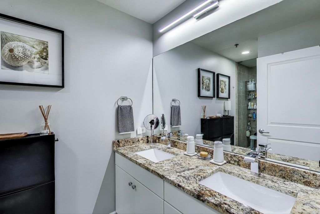 Live on Iconic Michigan Avenue! Step into this 16th-floor corner unit, thoughtfully designed with a modern aesthetic throughout. Enjoy soaring 9-foot ceilings and floor-to-ceiling windows that flood the space with natural light and offer sweeping west-facing views that stretch to the horizon. Both bedrooms and the open-concept living area feature hardwood floors, brand new carpet (2024), and unobstructed downtown views. Custom window shades add privacy and style throughout. The entire unit blends comfort and function, including oversized closets, a newer in-unit washer/dryer, and appliances that are less than a year old (approx. 10 months). Garage parking is available. The building offers 24-hour door staff, a south-facing outdoor pool, fitness center, dog run, and a private party room. Located just 3 blocks from the 'L' and Metra, and walking distance to grocery stores, shops, restaurants, the Museum Campus, Lake Michigan, and Soldier Field-this is a turn-key oasis in an iconic building.