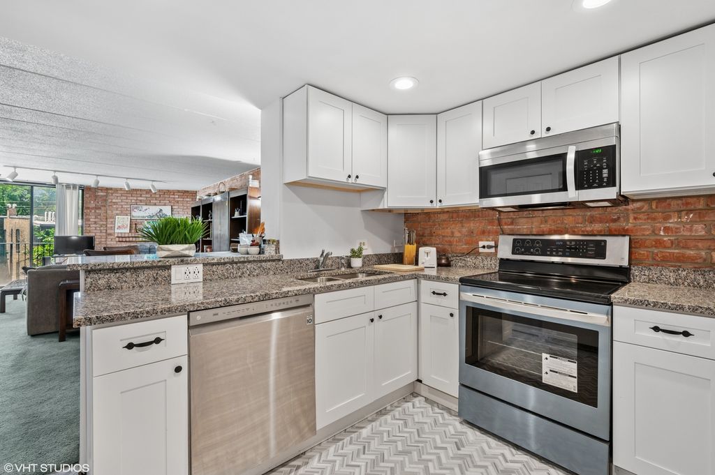 Welcome to this corner 2 Bed / 2 Bath Condo in Lakeview just steps from the lakefront. Tons of windows with southeast exposure fill the unit with natural light. The entire living room and dining room feature exposed brick walls adding warmth to the space, in addition to the wood-burning fireplace with hearth. The kitchen has recently been updated, with new stainless steel appliances, granite countertops, white cabinetry, tile flooring and a pantry for ample storage. Both bedrooms are large and will accommodate many different furniture layouts; the primary bedroom has a huge walk-in closet and attached bathroom while the second bedroom has floor to ceiling windows and sliding patio door. Recent updates include a new furnace and A/C (2025) and both kitchen and bathroom remodels (2018). This is an incredibly solid building, with concrete floors between units and excellent soundproofing. The private balcony faces South and is great place to garden or grill. Additional perks include same-floor laundry, fabulous exterior parking (the best space in the lot), storage unit and bike room. This unbeatable location puts you steps away from express buses and the red line, walking distance to Wrigley Field, Boystown, restaurants and bars galore and Lake Michigan!