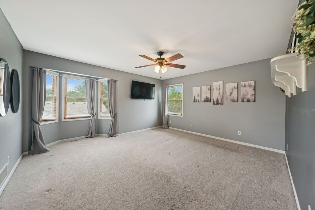 Cancelation due to buyer deciding not to relocate to Illinois! THE PROPERTY IS BEING OFFERED TO ALL BUYERS. HOWEVER, THE ASSUMABLE MORTGAGE IS BEING OFFERED TO VETERANS ONLY!! WHAT A DEAL FOR A LUCKY VETERAN BUYER!! THE BUYER WILL SAVE SO MUCH WITH THIS 2.375 INTEREST RATE OVER THE COURSE OF THE LOAN!! This spacious and versatile home offers room for every part of your life, whether that's working from home, entertaining guests, or simply having space to unwind. With four bedrooms, two dedicated office spaces, a rec or theater room, a game room with a dry bar, and even an area that could serve as a home gym, you'll find flexibility and comfort in every corner. The grand entrance features vaulted ceilings, a wide foyer, and a dramatic double staircase that gives the home a bright, open feel. On the main level, a private office sits near a full bathroom, making it an ideal fifth bedroom or guest suite. The kitchen opens to the family room and flows out to a low-maintenance composite deck-perfect for grilling, relaxing in the hot tub, or taking a dip in the pool, which has a brand-new motor. In warmer months, the outdoor space is set up for fun and relaxation, and in colder months, the finished basement becomes the perfect place for indoor entertainment. Upstairs, the primary suite includes a whirlpool tub, separate shower, double sinks, and dual closets-offering both comfort and convenience. Over the past four years, the home has seen thoughtful updates throughout. The AC and furnace have been replaced, and the garage now features smart openers, new doors, epoxy-coated flooring, and an electric car charging port. The laundry room has been refreshed with new flooring, washer and dryer, and a utility sink. New light fixtures, ceiling fans, and blinds have been added in many areas, along with fresh paint in several rooms, including the garage. The kitchen includes a new faucet and garbage disposal, along with updated cabinet hardware. The basement has been transformed with luxury vinyl plank flooring, new ceiling tiles, a new bathroom vanity, and carpeted stairs leading down. A full smart security system, Arlo video doorbell, and smart locks help provide peace of mind. Outside, you'll also find garden beds ready for growing your own fruits and vegetables, and the home comes with pool equipment and a convenient Rubbermaid storage shed. This home offers a well-rounded blend of function, comfort, and thoughtful improvement, ready to welcome its next chapter. Some other benefits include close proximity to the elementary school and high school and also downtown.