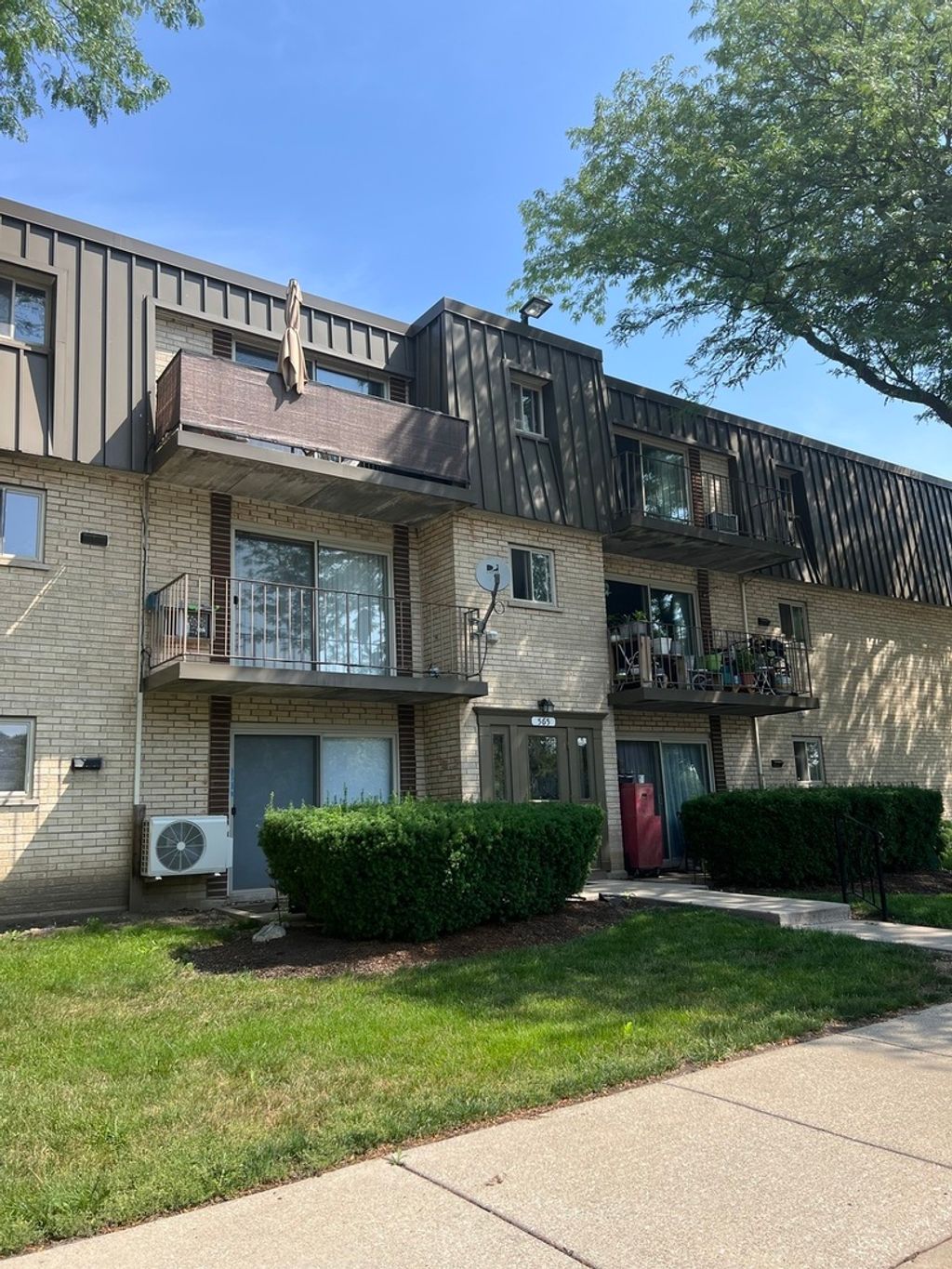 Bright and light 2 BR 1 BTH second floor unit. Freshly painted throughout. Plenty of storage in the unit. Also, storage space in the building basement.2 AC wall units. Water, gas, heat and scavenger included in the association dues. There are outdoor pool, clubhouse, tennis court, playground. Unassigned outdoor parking. Close to shopping, transportation, entertaintment, etc. Buffalo Grove High School. Real Estate taxes do not reflect HO exemption. Property is being sold in "As Is " condition.