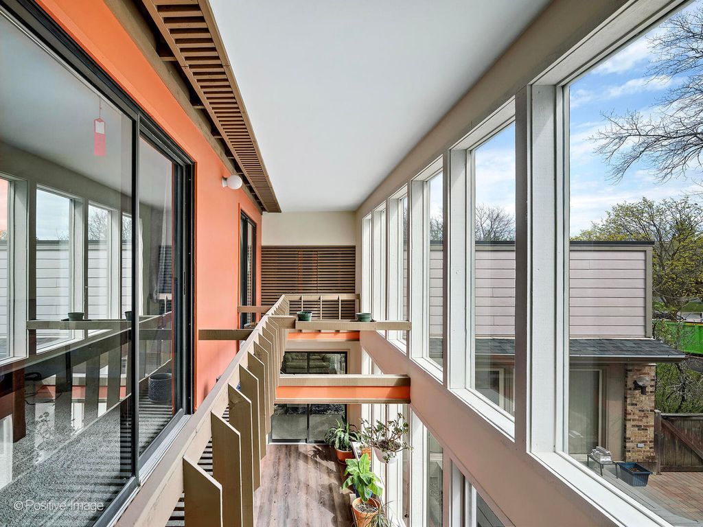 This updated mid-century style home in desirable Deerfield features five bedrooms and three bathrooms. A stunning two-story atrium floods the home with natural light, perfect for year-round gardening or enjoying views of the beautifully landscaped backyard and deck. Recent renovations modernized the kitchen and bathrooms, complementing the home's unique style. A massive greatroom provides an ideal space for hosting and entertaining. The home incorporates many energy-efficient features, including a convection system that utilizes the atrium to cool the home naturally during the summer. Enjoy award-winning schools and a convenient location with easy access to shopping, dining, and transportation.