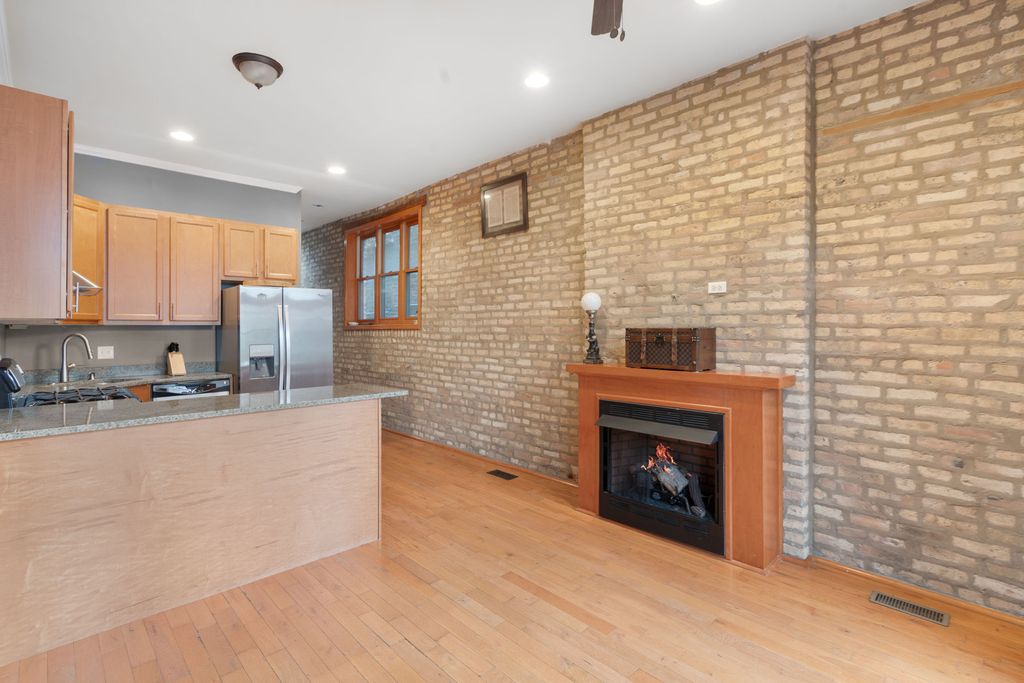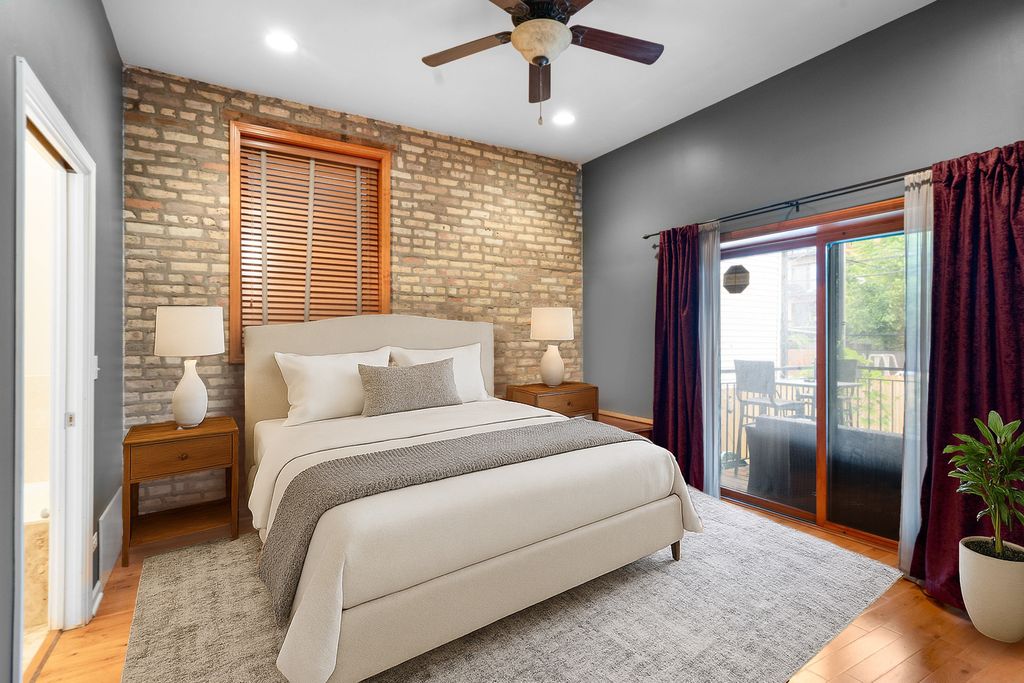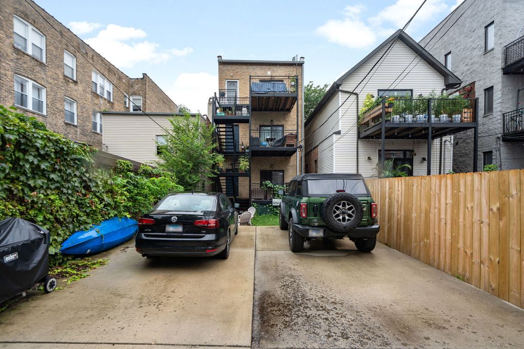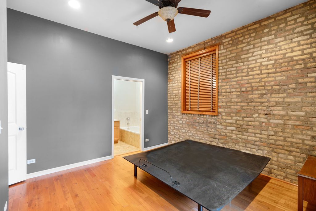 Prime location just steps from Humboldt Park! This spacious 3 bed, 3 bath condo blends character and comfort with exposed brick and a smart, functional layout. The main level offers a generous primary suite with whirlpool tub, separate shower, and access to a private back deck, plus a second bedroom, full bath, and in-unit laundry. The lower level features a large living area, third bedroom, and den/home office-ideal for remote work or guests. Two tandem parking spots, low HOA dues, and a well-maintained building on a quiet, tree-lined street.