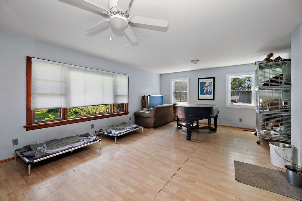 FALL IN LOVE with the possibilities! This 4BR, 1 bath farmhouse promises both potential & tranquility in equal measure. It is nestled on 5.26 very green acres - with lawns, gardens, shade & fruit trees - and set far back from the road. The house is a diamond in the rough, but has a great layout and quite a few functional updates. An ideal arrangement for homesteading, as well: There is a chicken coop (chickens could stay), dog run, a huge 40x70 outbuilding w/electric, and PLENTY of room to expand. Here is YOUR chance to enjoy the advantages of rural living within the convenient reach of Clifton, Martinton & L'Erable. Come and see! *Sold as is.*