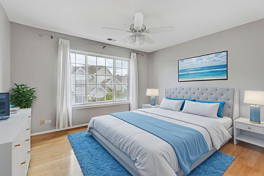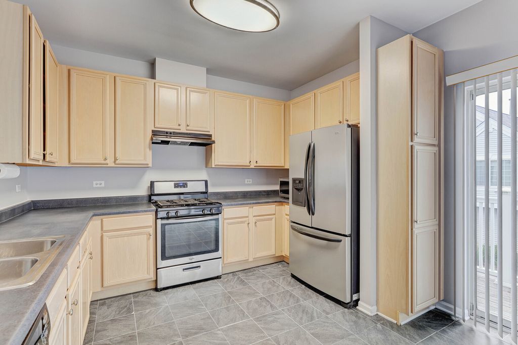 Charming Townhome in Wheeling - Move-In Ready with Room to Personalize! Step into this recently painted townhome featuring warm hardwood floors and a spacious open-concept living and dining area - perfect for relaxing, entertaining or enjoying the fireplace. Kitchen boasts 42" wood cabinetry and a full suite of appliances, including refrigerator, gas stove, dishwasher, hood vent, counter microwave, and sink disposal. Enjoy outdoor balcony directly off kitchen. Convenient first-floor laundry room with washer & dryer (just 3 years old), plus updated utilities including a new water heater (2022) and a brand-new roof (2025) for peace of mind. Upstairs, the vaulted master bedroom offers an airy retreat complete with a walk-in closet, ceiling fan and an open-concept shared bath including dual sinks, separate tub and shower. Second bedroom features bamboo flooring & ceiling fan. English finished lower level provides more living space and under-stair storage, with direct access to a 2-car garage featuring storage shelving. Just minutes from train, highways and restaurants. A solid, well-maintained unit that's ready for your finishing touches. Sold as-is. Schedule your showing today - this one won't last!