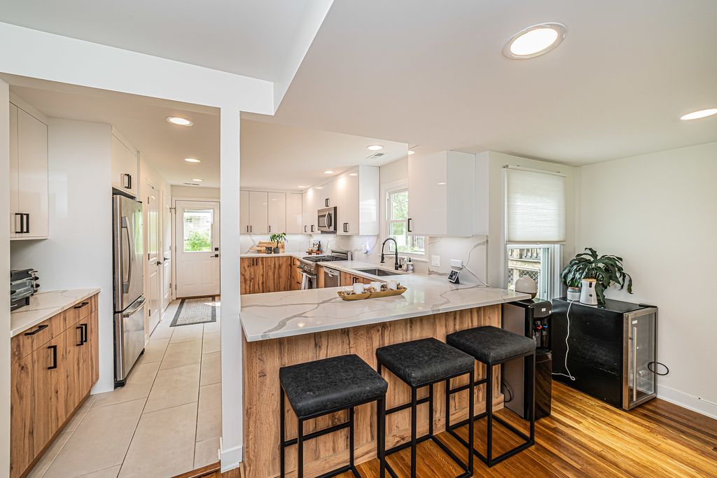 Welcome to Your Dream Home in the Highly Desirable Pleasant Hill & Fremd school district! This spectacularly remodeled 3 bedroom 1 bath home offers the perfect combination of modern upgrades and timeless charm, nestled in the heart of the sought-after Pleasant Hill neighborhood on a beautiful tree lined street. With access to Palatine's renowned school trifecta-Pleasant Hill Elementary, Plum Grove Middle School, and Fremd High School.. Step inside and be captivated by this 2023 fully remodeled modern home. The kitchen features gorgeous 42" oak and white cabinets, pristine Calcutta quartz countertops, and fantastic stainless steel appliances. The bathroom have been completely renovated with a modern vanity, quartz countertop, and marble tiling. Hardwood floors flow throughout the entirety of the home, from the living room, dining room, hallway, and all three bedrooms, bringing warmth and elegance to every corner of the home. Every aspect of the home was redone in 2023, from the roof and windows to the tankless water heater, furnace, washer/dryer and appliances. With all these major upgrades, you can move right in with peace of mind knowing that every aspect of this home has been thoughtfully updated. Located on one of the most private and quiet streets in the subdivision, this home is just a short distance to Downtown Palatine where you'll enjoy access to a variety of shops, dining, and entertainment. Commuting is a breeze with the Metra station just minutes away, and top-rated schools are right at your doorstep. This move-in-ready home is the perfect blend of modern upgrades, and thoughtful design. See it today! Agent Owned New single car attached garage or two car detached can be built prior to close for cost.