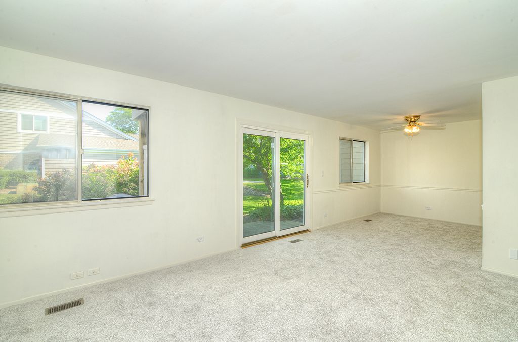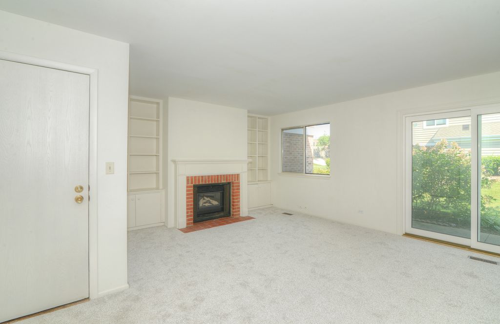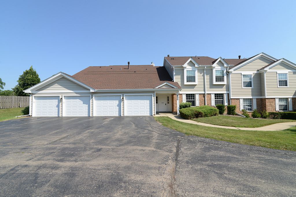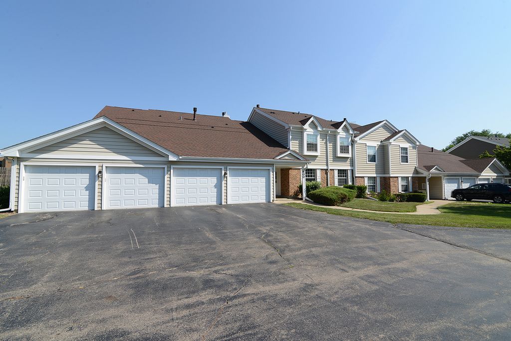 Welcome to this, move in ready 1st floor unit. Features, 2 bedroom 1 bath 1 car garage located on cul-de-sac. Laundry room with washer and dryer included. New neutral carpeting and fresh paint in all rooms. Offering gorgeous updated kitchen with new attractive White cabinetry, new dishwasher, new refrigerator, New microwave, newer stove, sink, garbage disposal and flooring. also a 6x4 pantry for your convenience. Cozy wood burning fireplace in living room dining room combo. Newer sliding glass doors to Patio. You will not be disappointed with this bright and cheerful space. Plenty of storage, great location, close to shopping, bus, parks and expressways. Across the street from Village Hall often has concerts and all kinds of activities Appointment only.