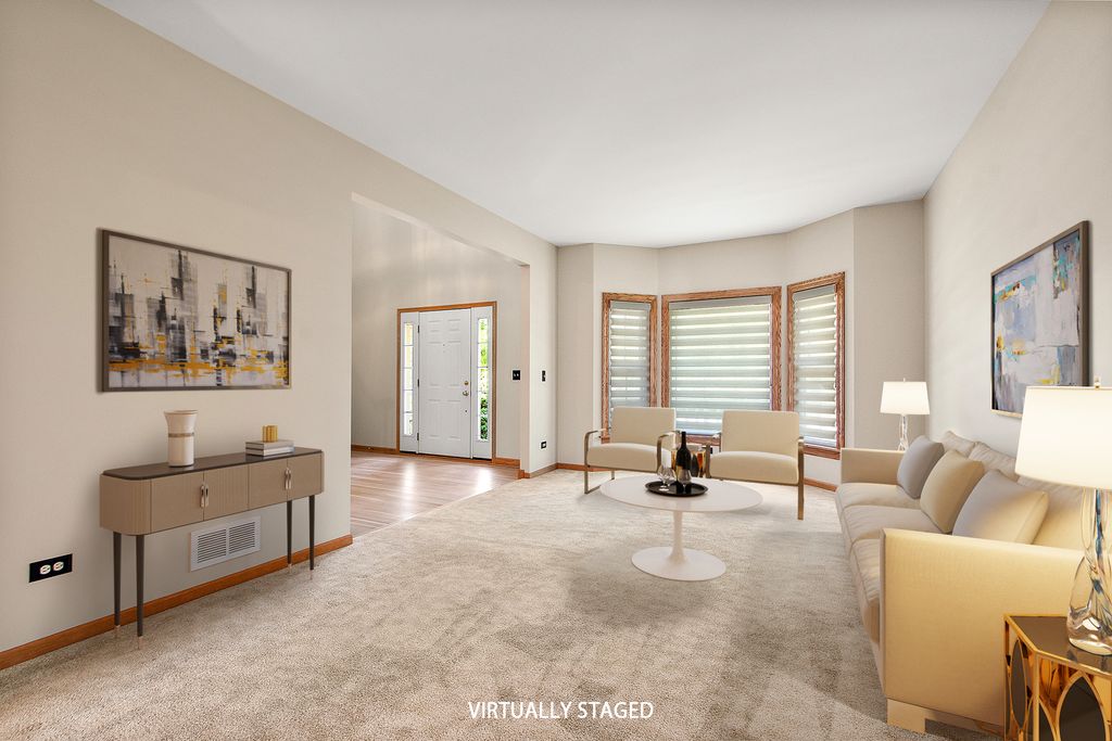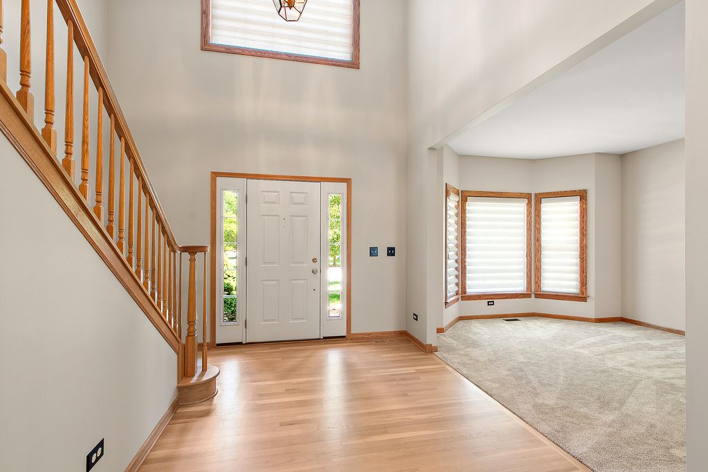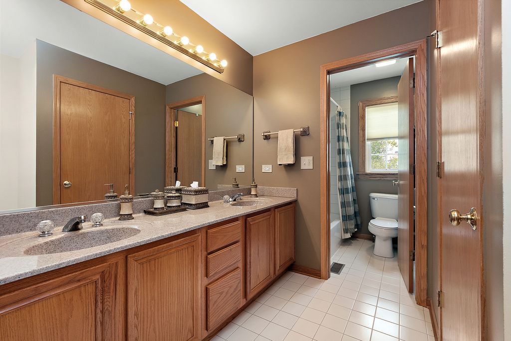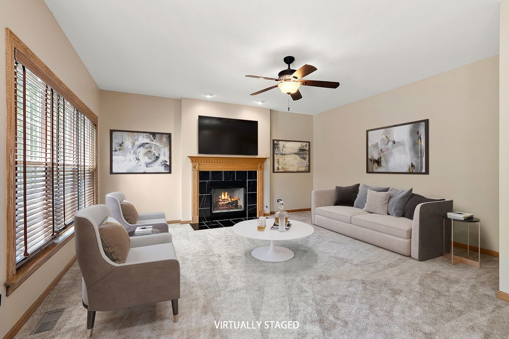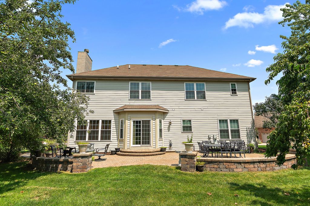 While the home itself offers comfortable living, the true showstopper is the backyard, a serene retreat featuring a large brick-paved patio that is perfect for relaxing or entertaining. This home features Corian countertops and stainless steel appliances in a kitchen that flows seamlessly into the family room, complete with a cozy fireplace. The open and spacious living and dining area offers the perfect setting for hosting gatherings. The primary suite offers a vaulted ceiling, double vanity, whirlpool tub, separate shower, and a generous walk-in closet. The professionally finished basement (2016) includes a wet bar, surround sound, built-in shelving, and solid cherry doors. Recent upgrades have enhanced both comfort and efficiency, including spray-in insulation, new windows with custom treatments (2020), a newer sump and ejector pump, a high-efficiency furnace and air conditioner (2016), updated kitchen appliances (2018), a sump pump (2021), and a new water softener. The property is conveniently located close to downtown Frankfort, shopping, and restaurants.