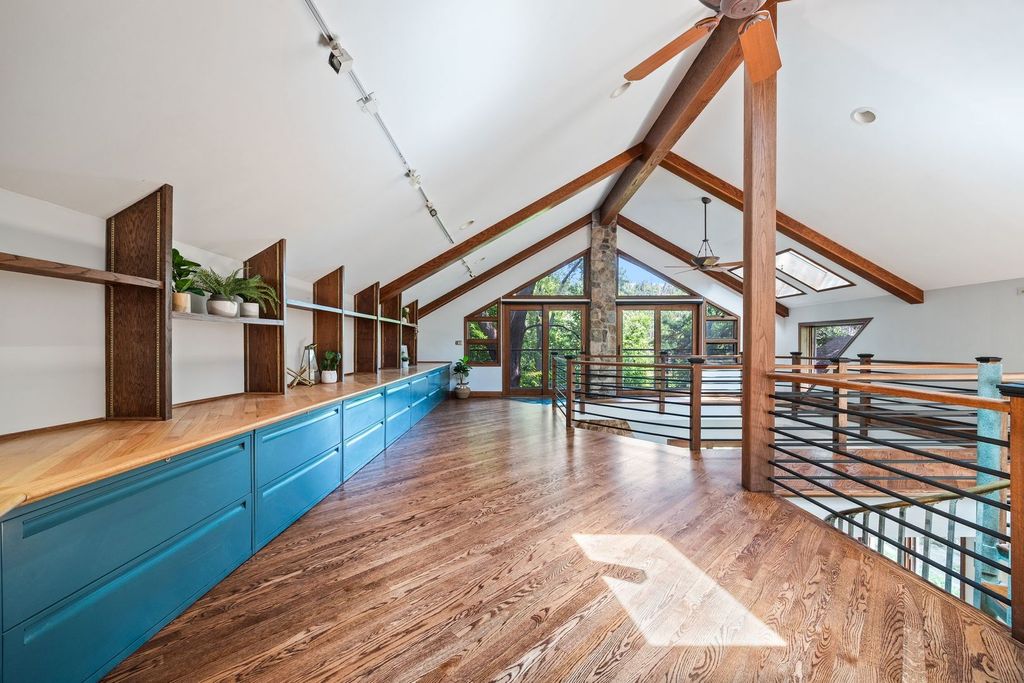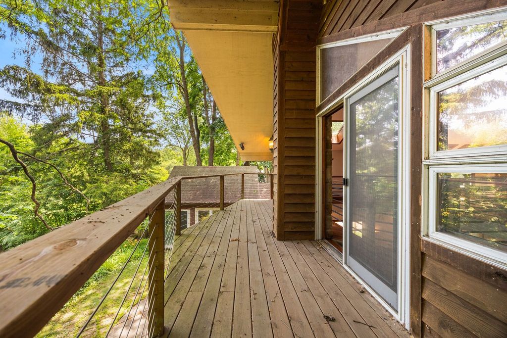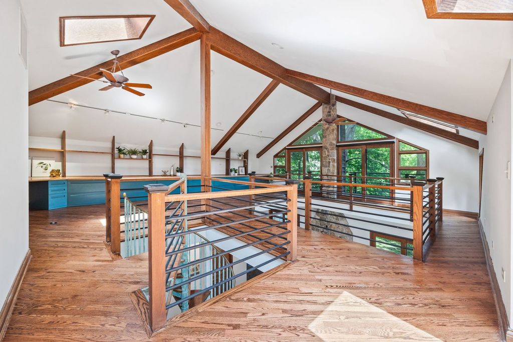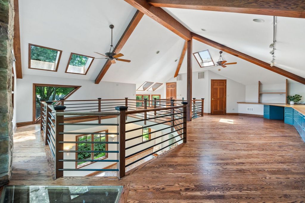 Unique, artistic home, this is like no other home you have ever seen! This beauty offers nature, character, and location-all in one. Waterfront, wooded .3 acre lot! The Des Plaines River Trail and Forest Preserve are across the river, offering private views and just a few steps to access 30+ miles of trails. Spend your mornings paddling a kayak or canoe, or simply enjoy the ever-changing views of the forest preserve from your balcony or patio. Step inside to a warm and inviting space featuring vaulted ceilings with rustic wood beams, skylights, a wood-burning fireplace, and radiant heated floors in the great room. Two main-floor bedrooms provide flexible living options, with a spacious front living room and kitchen with eating area. The open upper-level loft-style primary bedroom is truly something special, a treehouse-like retreat with soaring views, natural light, over-sized balcony, and room for a cozy sitting area or desk. A spacious bonus room-attached to the two-car garage-is ready to become your home gym, studio, or work-from-home space. Just minutes from Libertyville's vibrant downtown as well as easy Rte. 94 access to either Chicago or Milwaukee, this rare property offers a peaceful retreat. Merely steps from Riverside Park, you'll also enjoy easy access to tennis courts, open fields, playgrounds, and walking paths-all in a tucked-away setting with award-winning Libertyville schools. This is a rare chance to own one of just a handful of Libertyville homes on the Des Plaines River. Don't miss out-schedule your showing today! Seller is ready for new owners, come and fall in love!