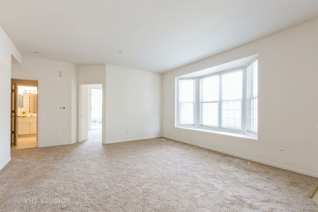 End unit ground level ranch unit. This home is move-in ready, featuring fresh paint, SS appliances, and new carpeting installed in August 2025. The open floor plan creates a bright and airy feel, with large windows in the living room allowing plenty of natural light to flow through to the kitchen. The kitchen itself has new stainless steel appliances, a convenient eat-in area, a pantry/storage space, and new lighting. There's also a deep laundry closet with a washer and dryer. The living room boasts a charming bay window with a built-in window seat, perfect for decorative touches. The attached one-car garage offers direct access to the living areas, making everyday tasks like bringing in groceries incredibly convenient, and it's also ideal for easy in-and-out access if you have a pet. The primary bedroom includes a walk-in closet and a full bathroom. The second bedroom features a sliding glass door that opens to a private patio. A guest bathroom and a linen closet are located in the hallway. The development is in a prime location, just minutes from I-88 and 355 tollways. It's also in a great area directly across from Yorktown Mall, with easy access to restaurants, shops, schools, and parks.