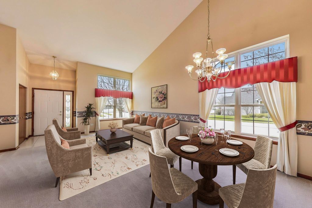 Spacious and Sunny Home in Carillon's 55+ Active Adult Community! Welcome to easy, elegant living in Carillon-Plainfield's premier 55+ active adult, resort-style community. Nestled in the desirable Dover neighborhood on a quiet cul-de-sac with peaceful pond views, this beautifully maintained home offers space, comfort, and the perfect location near the clubhouse, pools, and golf course. Inside, you'll love the bright, open floor plan filled with natural light. The spacious living and dining rooms feature soaring vaulted ceilings, ideal for both everyday living and entertaining. The kitchen is a cook's dream with extensive cabinetry and counter space, granite countertops, ceramic tile flooring, and a large sunny eating area that opens to the cozy family room. The first-floor primary suite offers privacy and convenience, with a large walk-in closet and an ensuite bath featuring a soaking tub, separate shower, and dual vanities. Upstairs, a generous loft area makes a great second living room, home office, or hobby space, accompanied by two additional bedrooms and a full hall bath. A deep-pour, full unfinished basement offers incredible storage or the potential for future finishing. Enjoy all the amenities Carillon has to offer-including indoor and outdoor pools, fitness center, walking paths, tennis and pickleball courts, planned activities, and a 27-hole golf course-all within a gated, beautifully landscaped community designed for active adults.