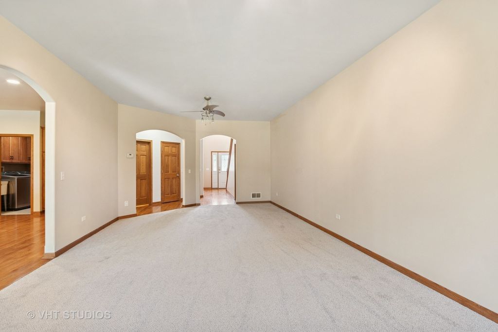 Brand new carpet throughout!!! Spacious, stylish, and full of upgrades! A rare find with this 4 bedroom 3.5 bathroom beauty. Featuring real hardwood flooring ,tray ceilings, rounded corners and archways, whole house vac, and upgraded lighting. The kitchen has everything from custom cabinetry, granite countertops, stainless steel appliances, large pantry, and a built in dry bar/hutch. Finished basement offers an extra living space with an oversized bedroom, full bathroom, and family room. Spend some time in back relaxing on the large patio or entertaining in the heated garage. This one has it all!