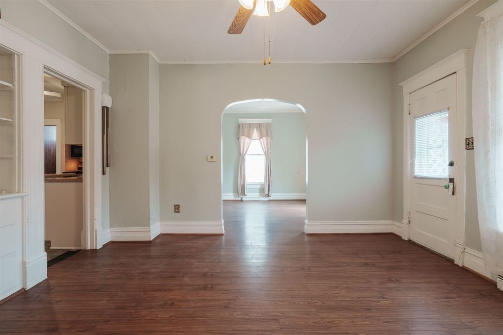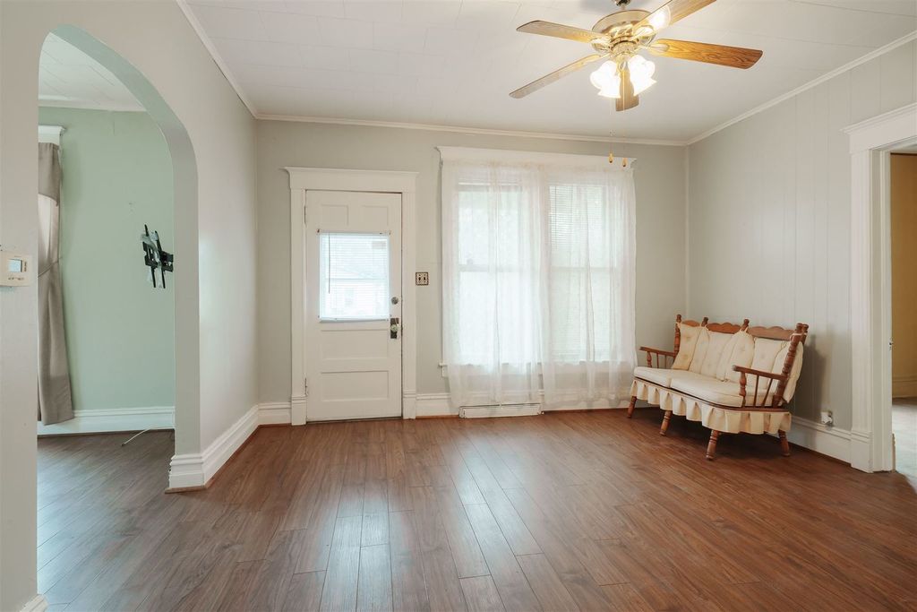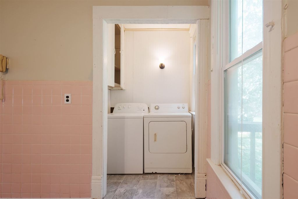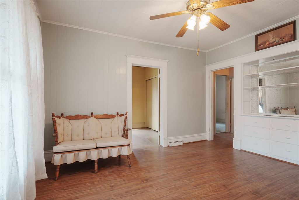 Charming home, updated mechanicals, electrical, plumbing, metal roof. Large kitchen with mobile island all kitchen appliances remain. Replaced windows on the first floor. Two bedrooms on the main level, this home has original woodwork with built-ins. floor Second floor needs your handyman skills for a family needs. Good sized fenced in yard with alley access, with plenty of space for a garage. There is lots of off street parking on a quiet street. Ample space in basement for storage. Much bigger home then it looks. Close to Sheridan grade school, shopping and the ever so popular O'Neal Park. Close to Down town Bloomington.