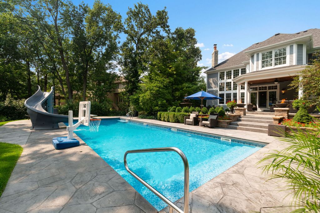 Spectacular custom-built Cavalcade home offering over 4,400 sq. ft. of impeccably finished living space, set on a beautifully landscaped lot plus an additional adjacent half-lot, providing nearly a full acre of private outdoor living space! Innumerable amenities await both inside and out, including 4 spacious bedrooms, 3.5 baths, a 3-car garage with a car lift, and a fabulous in-ground pool, ideal for everyday comfort and effortless entertaining. From the moment you arrive, you'll be captivated by the charming wraparound covered porch, mature trees, and stunning curb appeal. This standout home was featured in the 2006 Gallery of Homes, a distinction that speaks to the exceptional craftsmanship and thoughtful design inside and out. Step inside to find luxury finishes throughout, including extensive millwork like crown molding and wainscoting, Brazilian Teak hardwood flooring, transom windows, and striking coffered and volume ceilings. The grand foyer sets the tone with a dramatic staircase and balcony overlook, all beautifully framed by hardwood floors that flow seamlessly through the main level. The gourmet kitchen features ample hand-carved Barker cabinetry, granite countertops, a large island with a prep sink and counter seating, high-end stainless-steel appliances including a Viking Stove, Sub-Zero fridge, new Bosch dishwasher (2022) and microwave (2024), walk-in pantry, and a full-size wine fridge. The adjacent breakfast area offers gorgeous views of the backyard and opens to an impressive two-story family room, showcasing floor-to-ceiling windows that flood the space with natural light, Brazilian Teak hardwood flooring, vaulted coffered ceilings, and a striking Oklahoma limestone fireplace. Upstairs, you'll find the luxurious primary suite offering a sitting area, a walk-in closet with built-in shelving, and a spa-like bath with granite-topped dual vanities, a soaker tub, and a large walk-in shower. Three additional spacious bedrooms feature generous closets and ceiling fans; two share a Jack-and-Jill bath, while one has a private ensuite. A unique turreted sitting room with a wall of windows offers a versatile space for recreation or relaxation. Other outstanding interior features include a formal dining room and living room, a private office, a first-floor laundry room, and a deep-pour basement that offers incredible potential for future finished space. Experience unparalleled outdoor living with the heated in-ground pool with slide, diving board, and automatic cover. Multi-level patios include a covered patio with a ceiling fan for shaded relaxation and a spacious open-air area perfect for dining and lounging outside. Professionally landscaped with extensive hardscaping, a fountain, fire pit bowls, and a large grassy area, all fully fenced and surrounded by mature trees for unmatched privacy, this space truly feels like a retreat. Beyond the fenced area, an adjacent half-lot expands the property to nearly a full acre, offering additional open green space, perfect for recreation, gardening, or simply enjoying the added separation and privacy. Additional highlights and upgrades include: a new pool pump heater (2024) and thermostat (2025), new air conditioning unit (2024), new Zoeller sewage pump (2024), new Sonos sound system, new DVR and updated security system, and irrigation system. This one-of-a-kind home blends luxury, comfort, and convenience in every detail; don't miss the opportunity to make it yours!