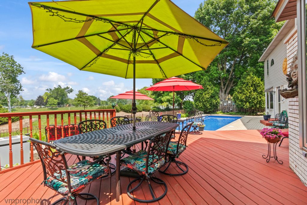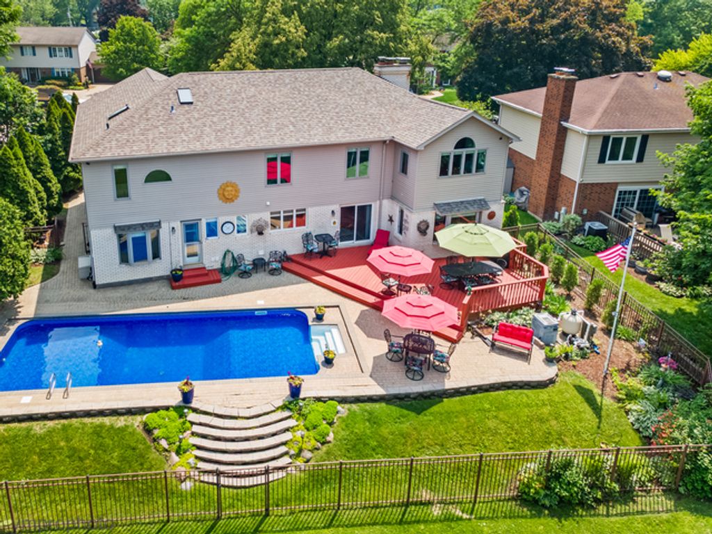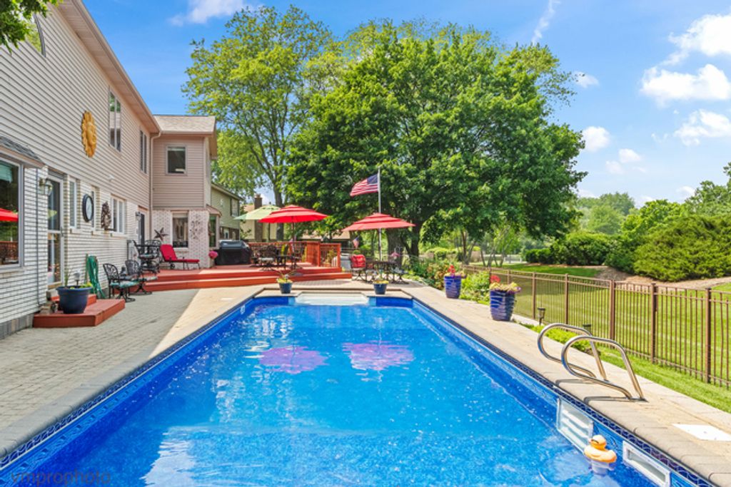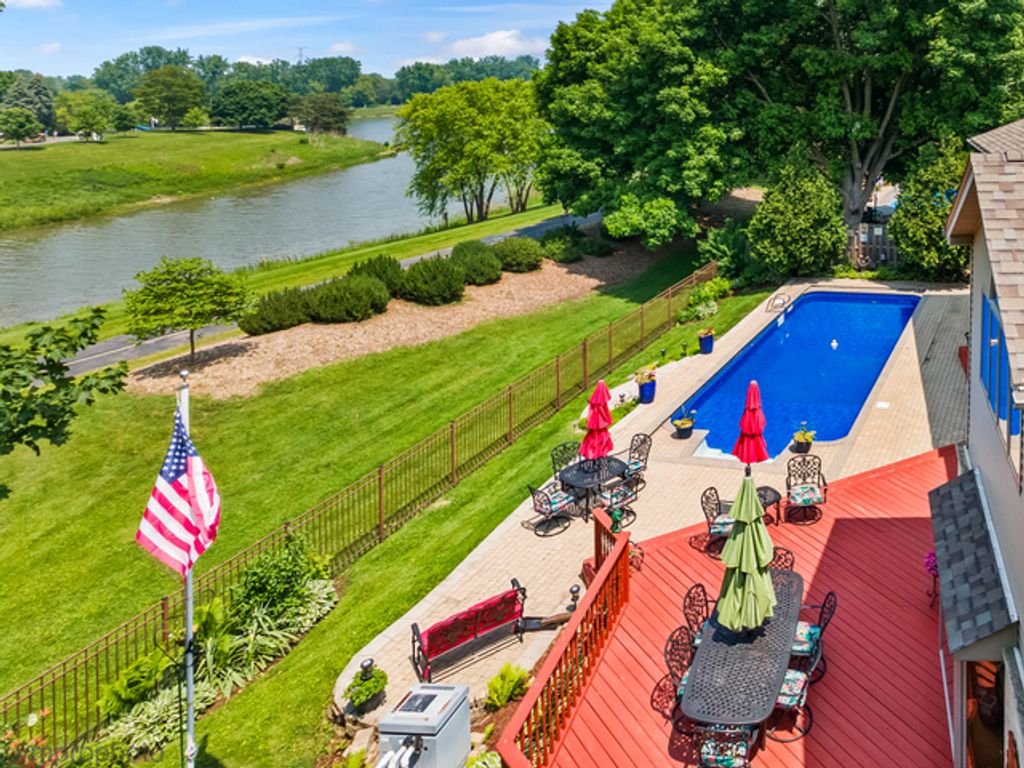 The home admired by many is now available. Wake up to views of Lake Arlington, grab your coffee and sit poolside and then walk out your fenced backyard immediately to the path that surrounds Lake Arlington. Walk to the playground, take sailing lessons, fish, kayak the 50 acre lake or take an evening stroll over for ice cream at the snack stop for the family! In addition to all of these amenities, this home is nestled into a cul-de-sac, lies in Hersey High School and has been extensively remodeled and added on to in a very precise manner. The roofline was changed and a huge addition added that allowed for 2 more huge bedrooms upstairs, so a total of 6 bedrooms on the 2nd floor. Owner currently uses one for an at-home office and the other for a 2nd floor media room - both have cathedral ceilings and closets - so you are able to use as you need. The first floor is expansive and features a 2-sided fireplace between the Living room and Family Room - each having it's own unique characteristics. The large Kitchen is bright and adorned w/ a large island with breakfast bar and sunny breakfast room with sliders to the extesive deck and brick paver patio that surrounds the heated INGROUND POOL. The total remodel of the Dining Room boasts a full wall of custom cabientry, granite countertop and task lighting - making it ideal for entertaining family or large gatherings of friends/colleagues. The addition of the first floor laundry room was custom designed for an At-home Salon complete with vanity with electrical behind wall at counter for all salon tools - nicely tucked out of sight. Powder Room is located right off the salon, as well as the laundry area and door to backyard. The Primary Bedroom was also enhanced with a cathedral ceiling and large walk in closet. The Primary Bath w/skylight has a lofty view of the lake, marble vanity with ogee edge, corner whirlpool tub, separate custom shower w/tile surround and etched shower doors and a separate water closet. The additional bedrooms are extremely spacious and the hall bathroom has skylight, dual vanities, tub/shower with whirlpool. There are pull down stairs to a full attic that is large enough to walk around in & great for storage. A fully finished lower level has a large Recreation area and gaming space, as well as a billiard area with fireplace. The full bathroom is a nice addition to the additional playroom, craft or hobby room. A great place to spread out and have fun or overflow company to have their own space. This EXCEPTIONAL LOCATION is unmatched and complete with all you could ask for. Entertain on the large deck or relax poolside on the paver patio. The inground pool has a new liner and was designed for floating around or great volleyball games, pool is shallow on either end with the center being deeper for activities. The lot is fully fenced and the paver walk wraps to the front of the yard & charming front porch. Hardscape steps take you to the back gate where you can access the walking trail or walk your paddleboard down to the lake to enjoy some exercise and peaceful moments as you navigate Lake Arlington. Opportunities don't come along like this with a home of 3750 SF with lake views and pool. A must see for any family who wants to enjoy a resort at home for years to come.