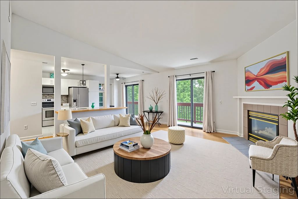 Modern Comfort Meets Move-In Ready Charm! Step into this beautifully updated 2-bedroom, 2-bath condo that perfectly blends style and convenience. The heart of the home-a sleek, contemporary kitchen-features crisp white cabinetry, a classic subway tile backsplash, stainless steel appliances, and stylish light fixtures that elevate the space. Freshly painted with hardwood floors throughout, the unit boasts soaring ceilings, a cozy gas-starter fireplace, and a skylight that floods the living space with natural light. Step out onto your spacious private balcony-perfect for morning coffee or entertaining guests. Enjoy peace of mind with a newer A/C unit, newer water heater, and an attached garage plus an additional outdoor parking spot. The primary suite offers a full bath for added privacy and comfort. Located in a well-managed, pet-friendly association that allows rentals-ideal for homeowners and investors alike! Just a short distance to grocery stores, shops, and everyday conveniences.