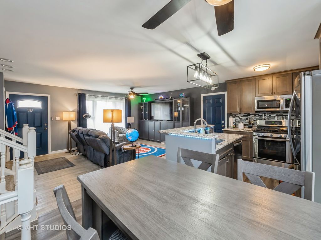 Well appointed split-level home on corner lot. Just around the corner and steps away to elementary school. Home interior and exterior has been remodeled. Beautiful new kitchen with an abundance of cabinets and granite countertops. Bathroom shower, vanity and lighting all compliment this makeover. New carpet in family room. Spacious laundry room in lower level.. New Trek composite deck is great for entertaining your guests or just enjoying some quiet time alone. Oversized shed is useful for additional storage. Fenced yard. Flexible closing date.