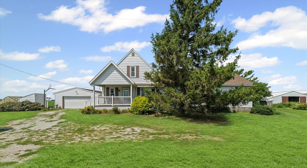 Don't miss your chance to own this charming and spacious farmhouse set on 10 picturesque acres within the Fisher school district. Offering 2,452 square feet of living space, this home features multiple living areas-perfect for relaxing, entertaining, or accommodating a growing household. The layout includes 3 bedrooms, with 2 conveniently located on the main level and a private suite upstairs complete with a full bathroom. Step out back and unwind on the expansive enclosed porch, ideal for enjoying peaceful country evenings and scenic views. Additional features include an expansive basement, attached 2-car garage, and 58' x 36' pole barn with an additional 18' lean-to as well as an additional 36 wide open hay shed. Looking for more land? The adjacent 19.3 acres to the north is also available for purchase, offering even more potential for expansion, recreation, or investment.