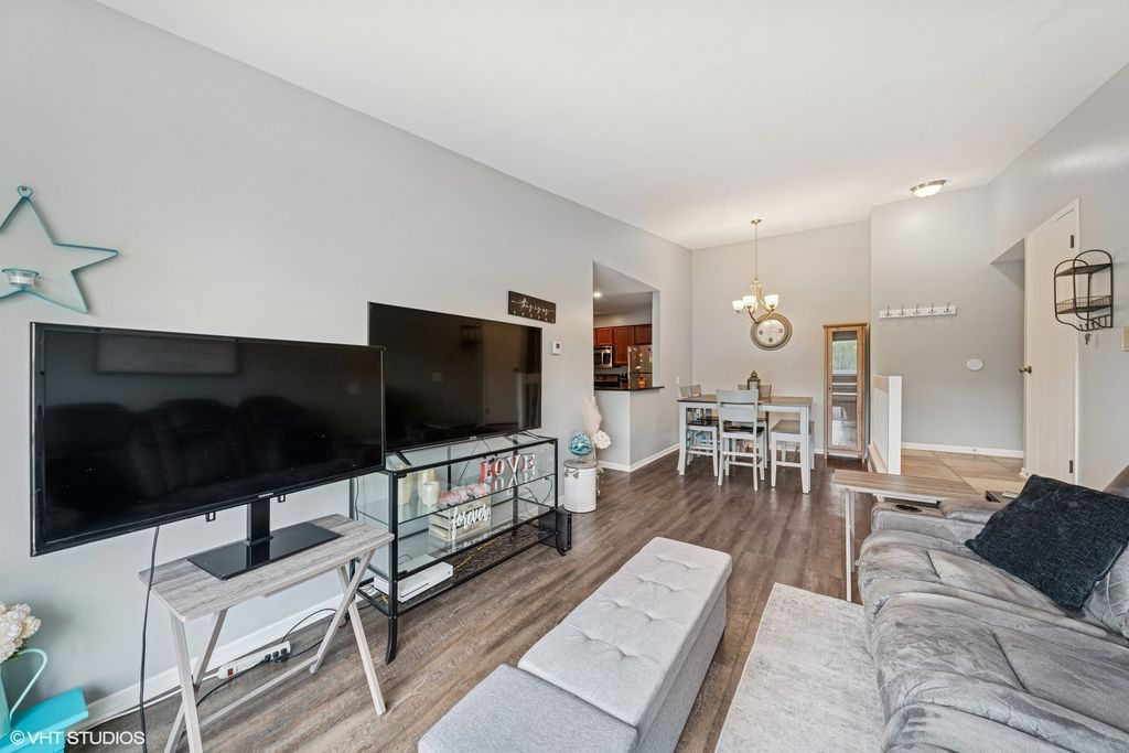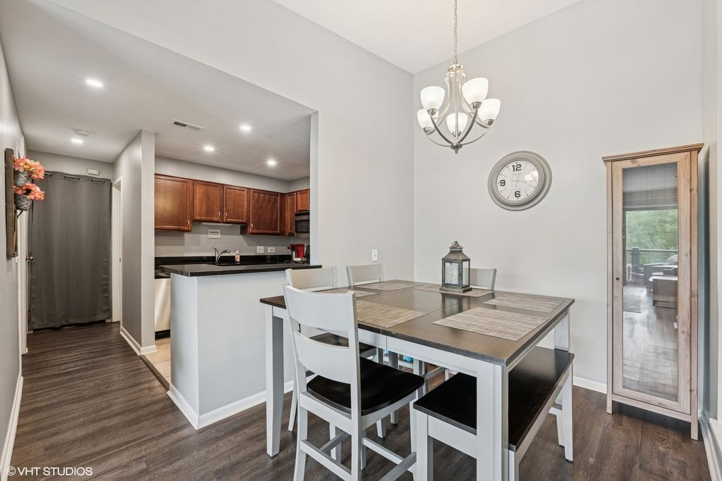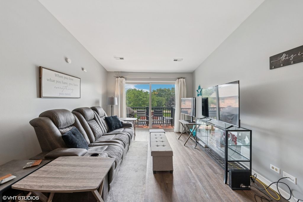 Charming and move-in ready, this 1-bedroom, 1-bath condo is perfectly situated in the desirable Chantecleer Lakes community. Step inside to find spacious living and dining areas with soaring volume ceilings and a bright, open feel. A sliding glass door extends your living space to a private balcony-ideal for summer evenings and grilling. The updated kitchen makes meal prep a pleasure, while the community offers a true vacation-style lifestyle with a clubhouse featuring a party room, fitness center, and sparkling outdoor pool. Assigned parking (Spot #E-5) is conveniently located near the building entrance. A unique asset of this condo is the deeded hallway storage room immediately adjacent to the unit. This prime location offers unmatched convenience-close to major expressways, Route 59, and the commuter train for an easy trip to world-class Chicago. Enjoy proximity to acclaimed downtown Naperville's shopping, dining, and entertainment, with McDowell Forest Preserve right across the street. Don't miss your chance to enjoy summer and beyond in this welcoming home and vibrant community!
