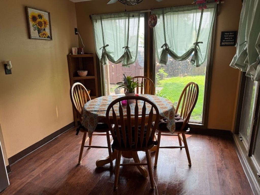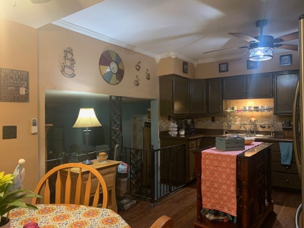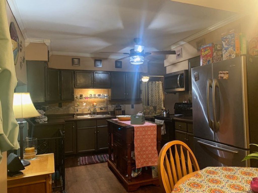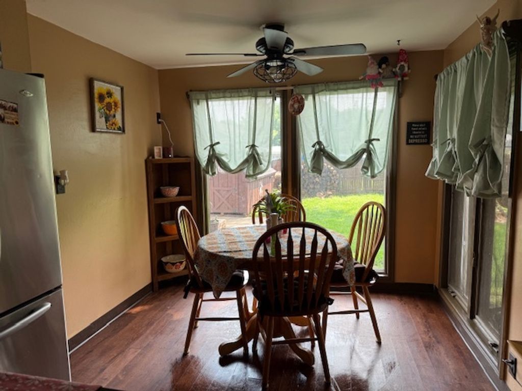 Three bedroom, one and a half bath split level home has and eat in kitchen, a fantastic pantry, a two car attached garage, and a partial basement. Plenty of parking in the driveway and a wonderful covered front porch for sipping morning coffee. There is an outdoor shed, covered rear porch, firepit, and fenced back yard. The home has several new widows, newer roof (2024 per owner) updated vinyl siding, furnace and AC. There is an extra finished room in the basement that could be used as a private office. The home is within walking distance to schools, parks and downtown.