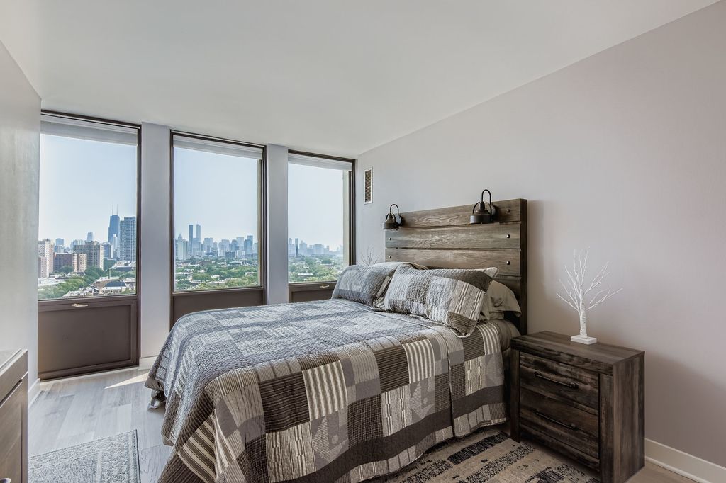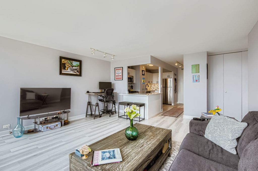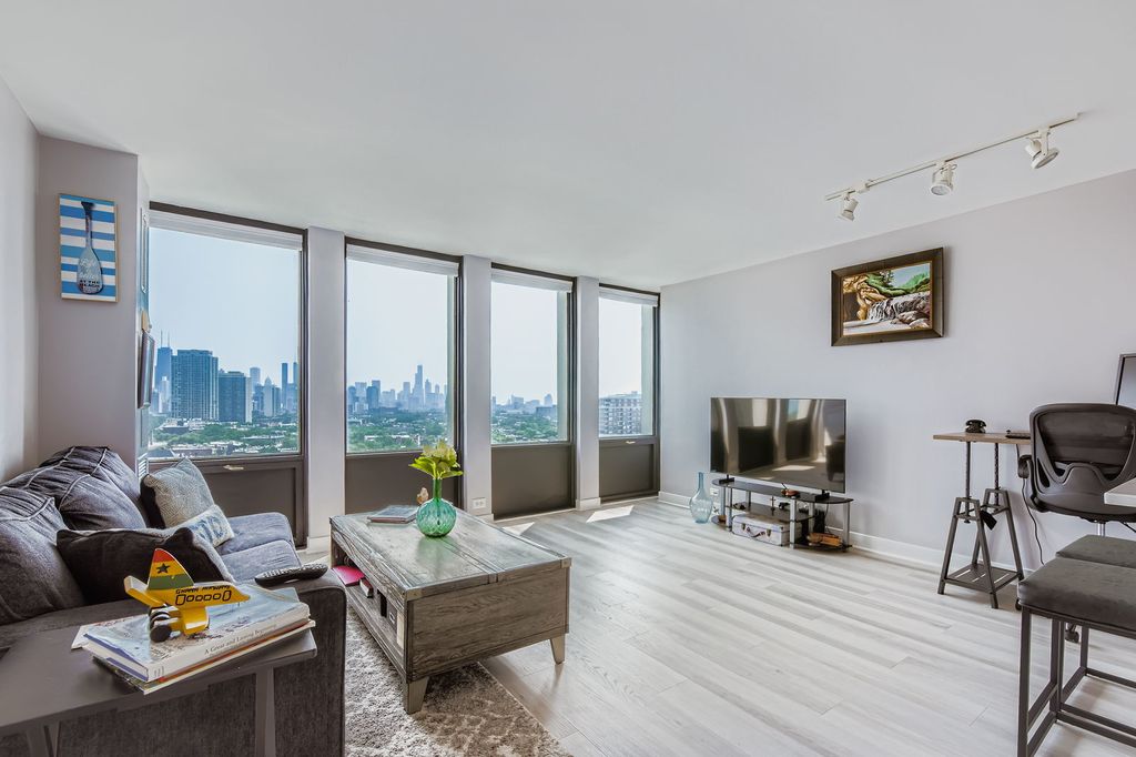 Welcome to this Positively Perfect One Bed in Lincoln Park! It has it all--a fully rehabbed kitchen & bathroom, one garage spot included, pet friendly, and investor friendly too (No rental cap). Enjoy sitting at the newly constructed kitchen island and gazing out at your view-- it's easy to do with a wall of windows that run the entire length of the living room and bedroom, showcasing absolutely stunning and completely unobstructed south facing skyline & lake views! The kitchen is complete with brand new matching appliances, slow-closing cabinets, and pristine quartz counter tops. Big perk (and rare find) is the impressive amount of closet space too- 3 in total! The building itself has a 24/7 door person, a storage locker, bike storage, a newly rehabbed laundry room with brand new app-connected washers/dryers, and an outdoor pool complete with loungers & grills ready for fun in the sun! Being right at the corner of Fullerton & Clark, this is the perfect spot to enjoy a myriad of restaurants, shopping, grocery stores, nightlife, and more. Plus, you'll marvel in its exceptionally close proximity to the lakefront, Lincoln Park Zoo, and several bus lines too. This condo truly leaves you wanting for nothing!