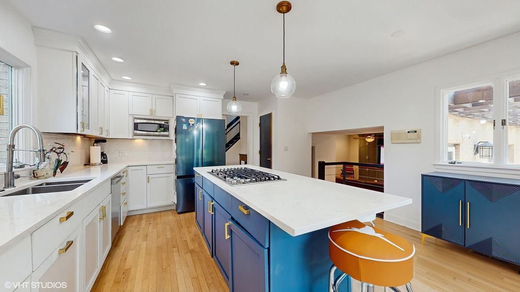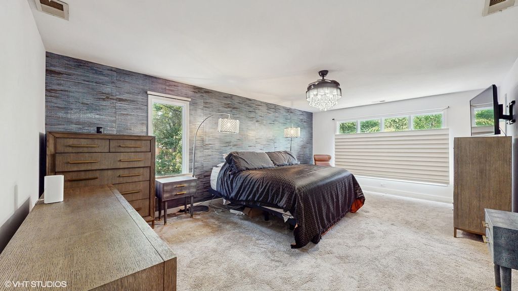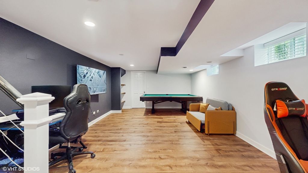 Step beyond the Waller Gates of Auvergne Place and discover a true backyard retreat-an exceptional outdoor living space designed for both relaxation and entertaining. The yard features elegant Bluestone pavers that begin at the front patio and continue along a pathway to an in-ground pool surrounded by multiple seating areas, a pergola, a deck off the kitchen, and a fully equipped pool house for changing and storage. Inside, the home offers expansive, thoughtfully updated living spaces, including a family room with custom built-ins and a wet bar, a modern kitchen with quartz countertops and a center island, a formal dining room, a separate living room, a spacious office or optional bedroom, and a mudroom with ample storage just off the garage. Upstairs are four generous bedrooms and two full baths, including a luxurious ensuite primary suite. The finished basement adds even more flexibility with a full bath, laundry room, and updated flooring. Major updates include a new pool heater (2024), new pool pump (2025), restaining of the deck, pergola, and pool house (2024), new toilets in three bathrooms (2021), a new vent in the upstairs bath (2022), new carpet in the bedrooms (2021), updated basement flooring (2024), and full renovation of the basement bedroom including new flooring, drywall, and paint (2022). Ideally located just steps from miles of forest preserve trails to the west and Keystone Park and the Metra station to the east, with a 20-minute commute to downtown, this home is truly move-in ready. There's still time to enjoy the pool and soak up the summer-you won't want to miss this backyard oasis.