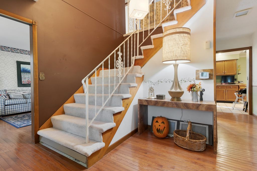 Situated on a beautiful, expansive 5-acre lot, this 3-bedroom, 2.5-bathroom home offers a fantastic foundation to customize your dream home. The generous acreage is the true highlight, featuring 3 acres of pasture perfect for horses or other animals, with ample room for additional structures or expansion. The existing 40'x16' outbuilding with running water and electricity with an attached 16'x14' lean-to, provides great space for a stable, storage, or workshop with 220v electrical outlets. With its functional floor plan, beautiful hardwood flooring through most of the first floor, and abundant storage throughout, this home offers a wonderful opportunity to make it your own. The bright and airy Living/Dining space offers a seamless flow for hosting, featuring a beautiful bay window and two large accent windows. The Kitchen is complete with all stainless steel appliances, a dedicated eating area, and an over-the-sink greenhouse window overlooking the back. Just off the Kitchen sits a small Four-Seasons room. The sprawling Primary Bedroom boasts a private full bathroom with jacuzzi tub and direct access via a sliding door to its own exclusive second-story balcony. The 2nd floor has a small office space as well as a completely redone full hall bath with a beautiful walk-in shower and ceramic tile. Enjoy the tranquil setting of an expansive front and backyard full of mature trees from the large Front Porch or Back Deck that has a remote controlled Sun Setter awning. Practical features include an Attached 2-car Garage, an Oversized Driveway for extra parking, full basement, and many storage options throughout the home and property. This is a smart investment for buyers seeking space, privacy, and the chance to customize a well-maintained, classic home. Property is being sold AS-IS. Don't miss this rare chance to secure your own private slice of the countryside! Schedule your showing today.